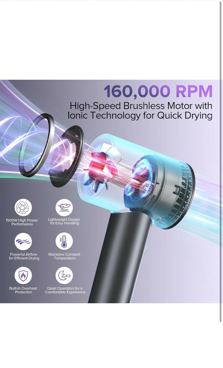 Hair Dryer 160000 RPM Professional High and 25 similar items