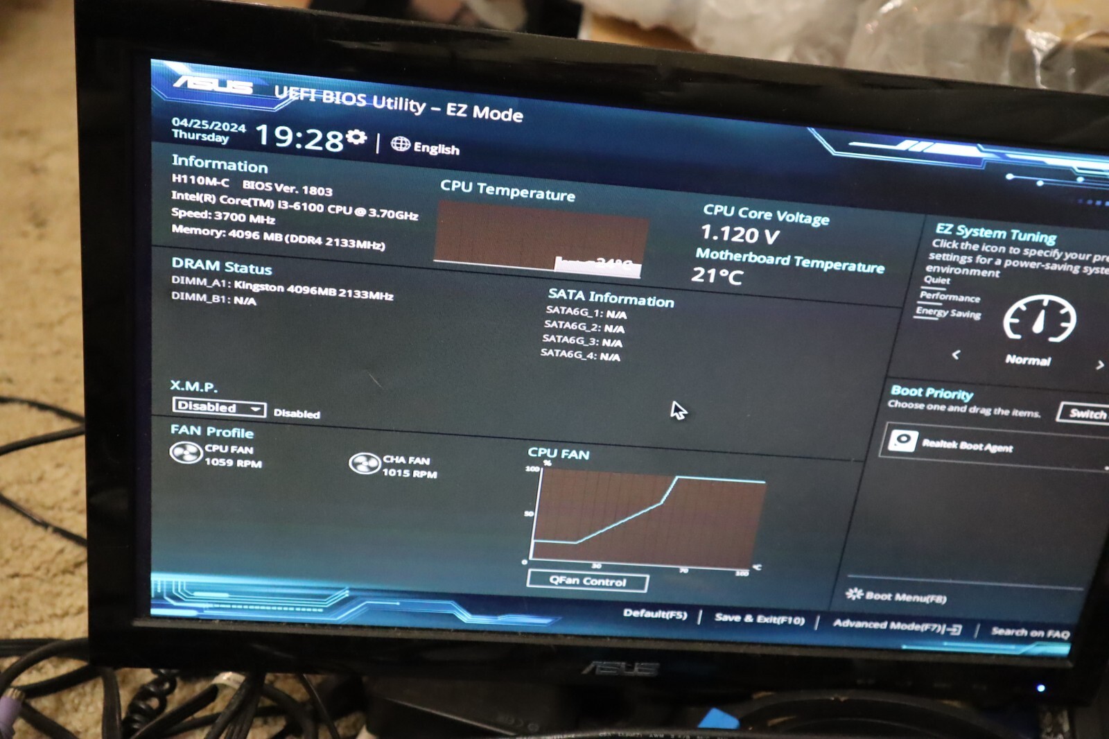 Asus H110M-C MicroATX Motherboard Intel LGA1151 i3-6100 CPU I/O Shield+ Fan+Ram