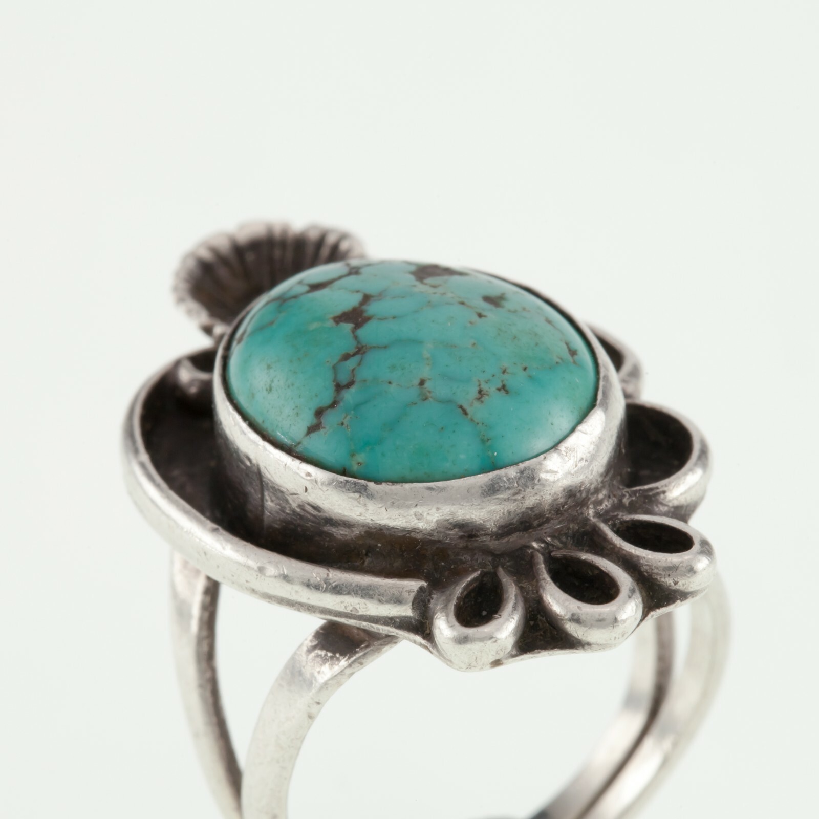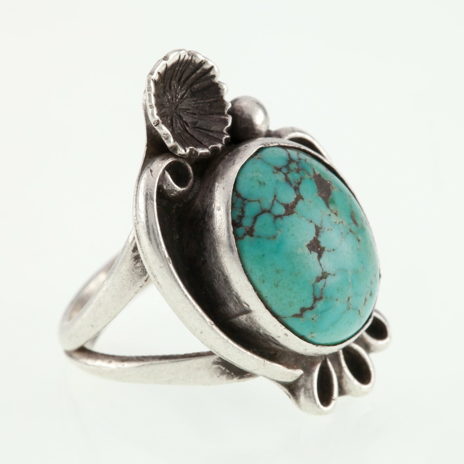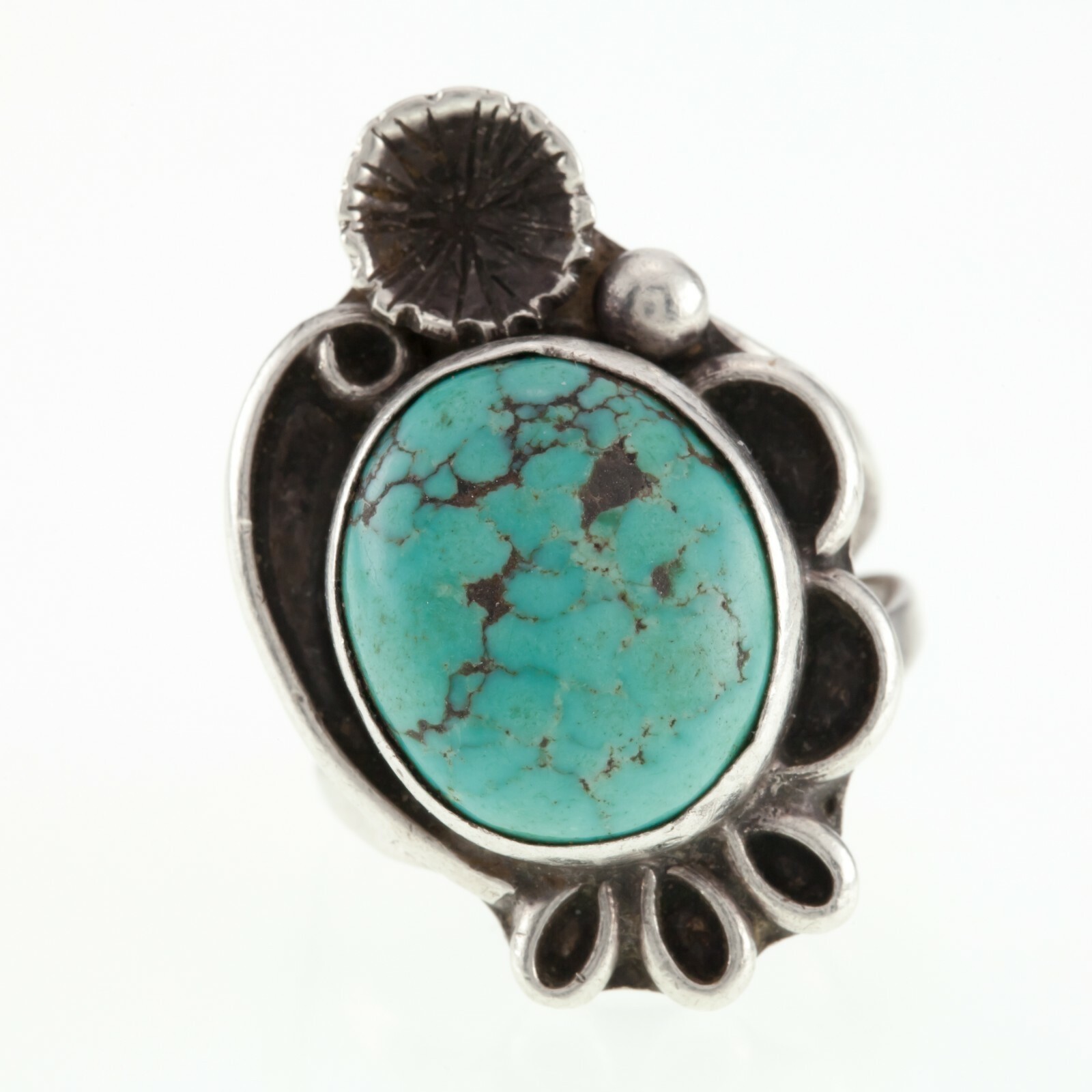 STERLING Silver Navajo Turquoise Ring Size 5.75 Signed Rd