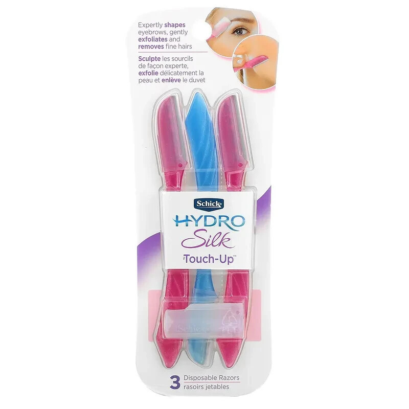 The Schick Silk Touch Up razor is a great multipurpose beauty tool that expertly shape eyebrows, remove fine hairs, and also gently exfoliates. It is designed with fine micro guards on the blade to help protect skin. The set include 3 razors and 1 extra Precision Cover that attaches to the blade to shorten the blade's length for precise eyebrow shaping.