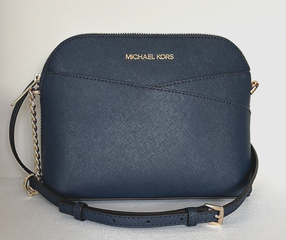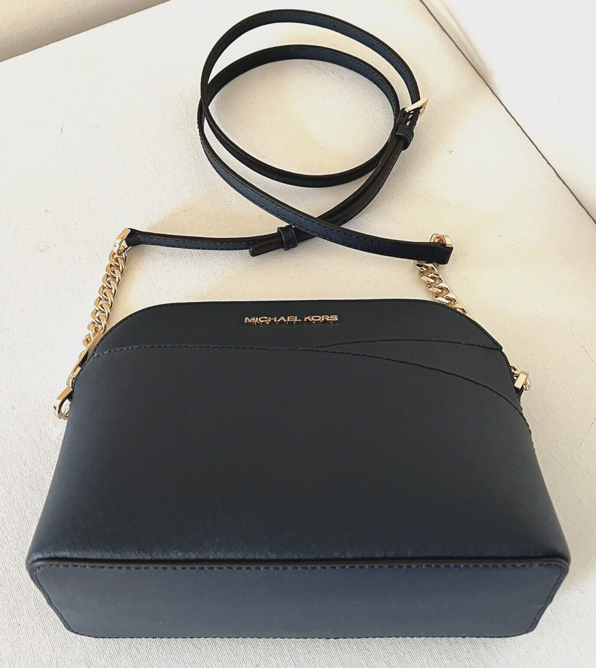 New Michael Kors Jet Set Travel Medium Dome Crossbody Leather Navy