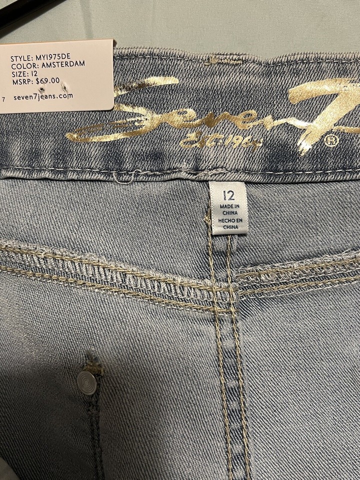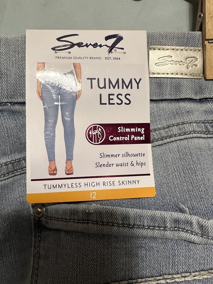 Elevate your denim game with these Seven7 Tummyless High Rise Skinny Jeans in size 12 and Amsterdam blue color. These distressed jeans are perfect for a casual look and are crafted with a regular fit for ultimate comfort. The high-rise waistband ensures a flattering fit and the skinny style accentuates your curves.