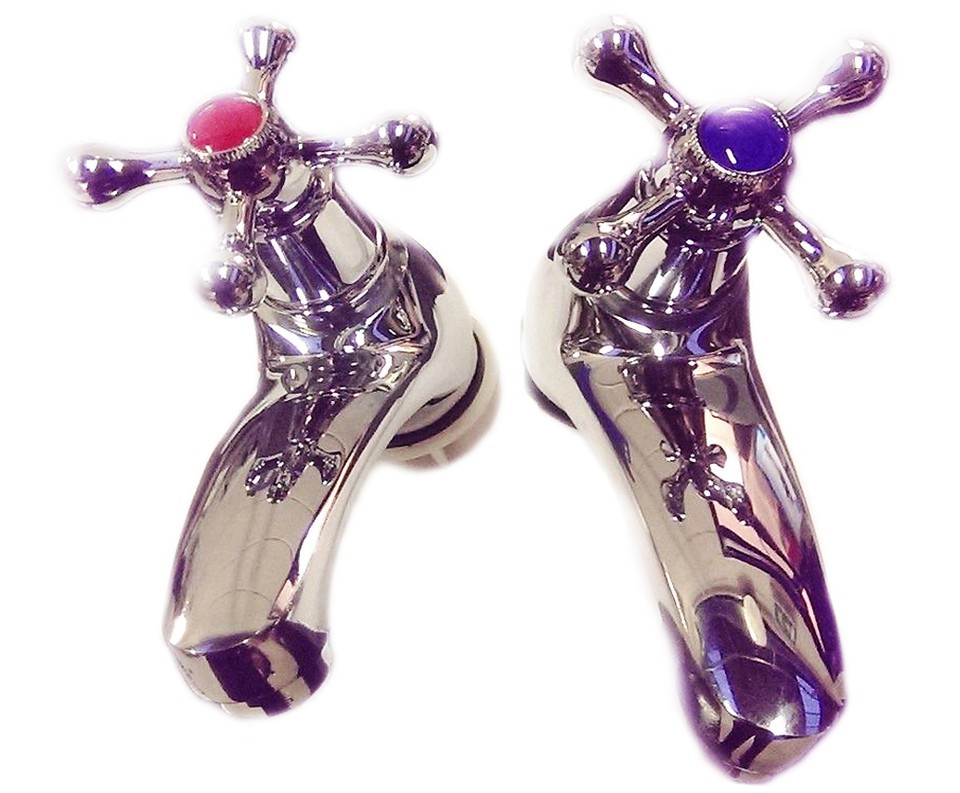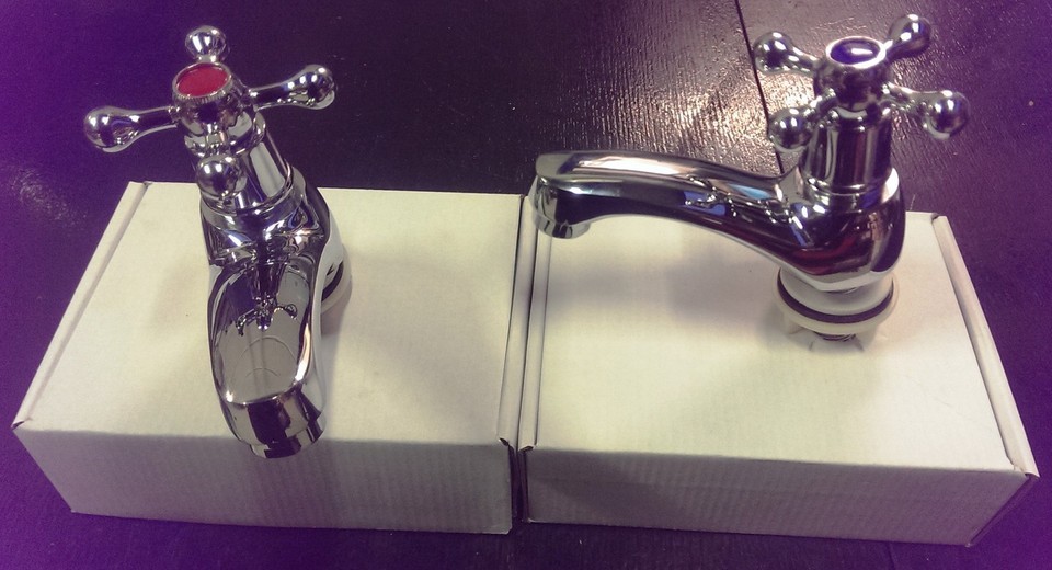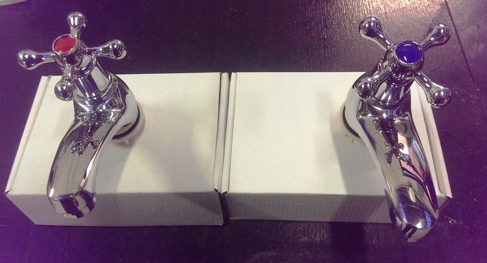 CLASSIC BASIN SINK TAPS TAP PAIR HOT COLD SET BATH CHROME STRONG TRADITIONAL T15