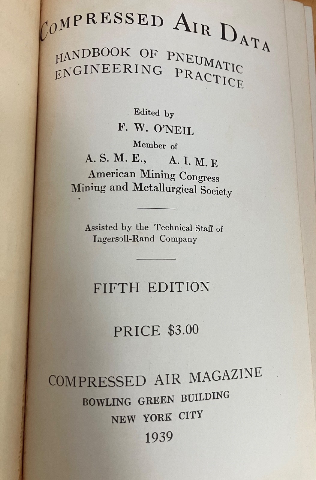 Compressed Air Data by FW O'Neil Pneumatic Engineering Handbook 5th Edition 1939
