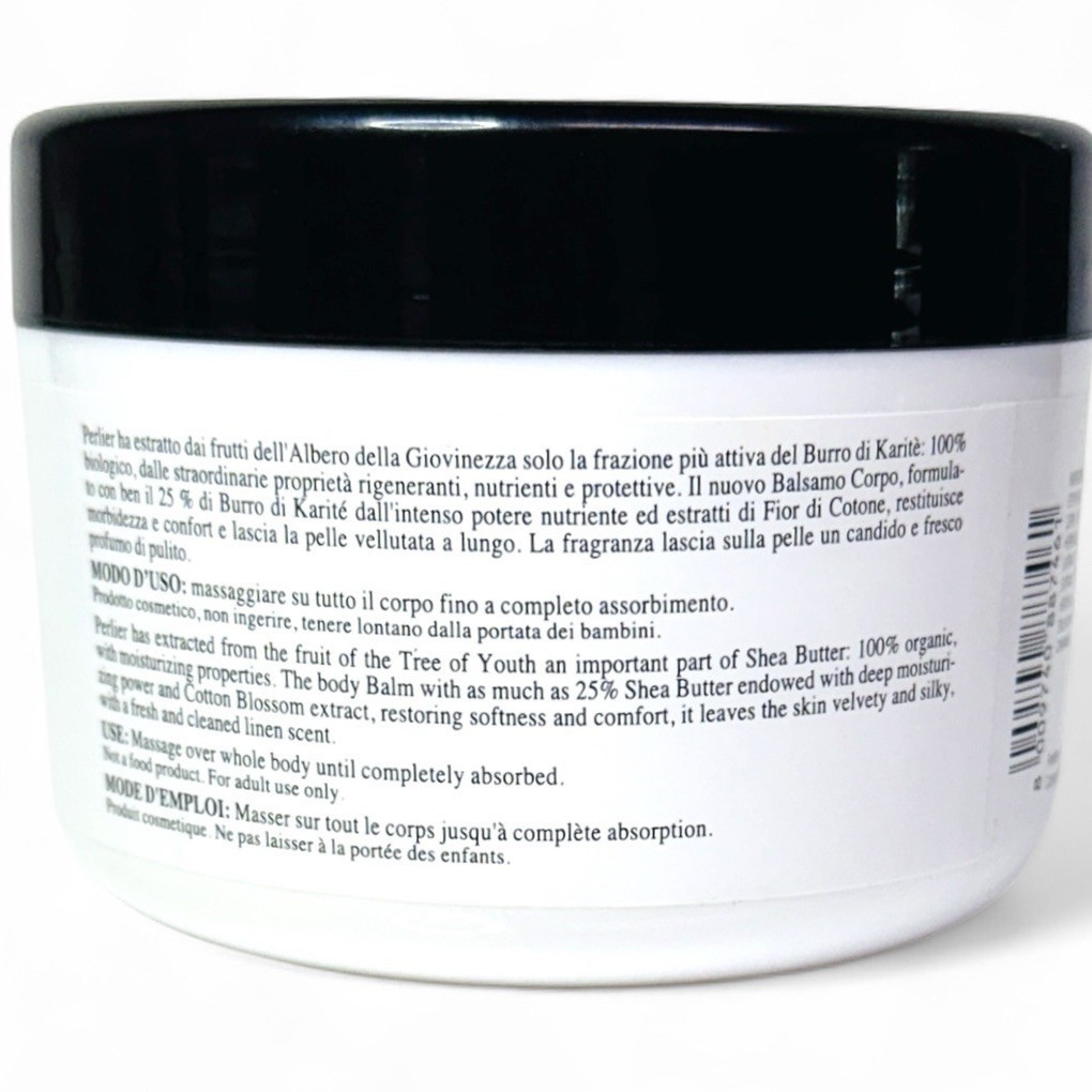 Experience deep hydration and skin comfort with Perlier Shea Butter Intensive Nurturing Body Balm with Cotton Blossoms. Featuring 25% pure shea butter and cotton blossom extract, this indulgent body balm softens, protects, and restores even the driest skin. Its rich, velvety formula absorbs quickly for immediate nourishment, leaving the skin delicately scented and smooth all day. Made in Italy, this luxurious skincare is perfect for daily use on all skin types, especially dry, rough, or mature skin.