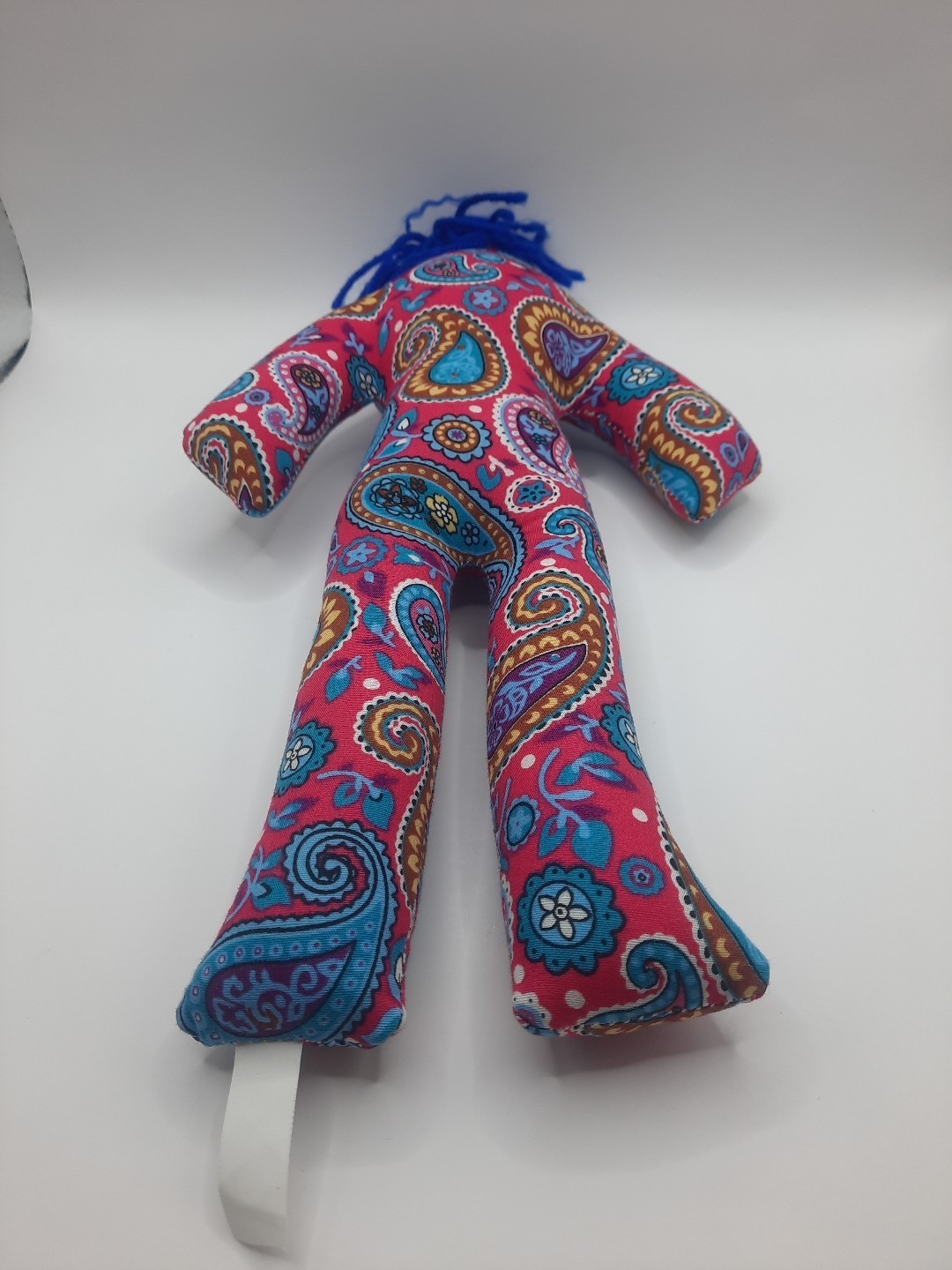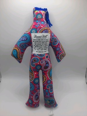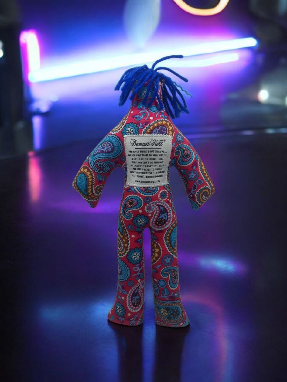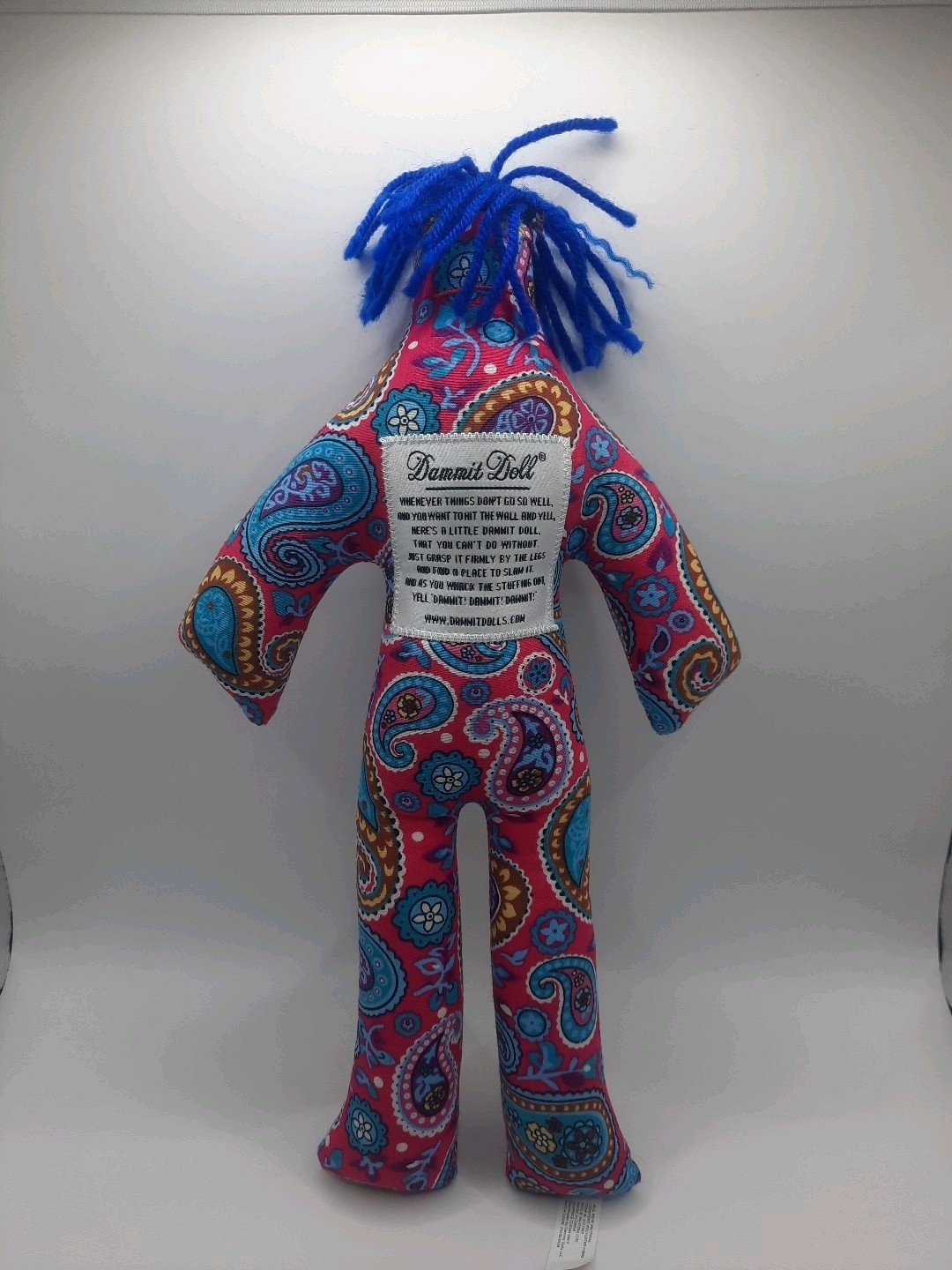 This 12-inch plush Dammit Doll is the perfect stress reliever for anyone. With its soft body and closed eyes, it is designed to make you feel calm and relaxed. The doll has blue straight hair and is made of non-toxic, non-scented cloth.