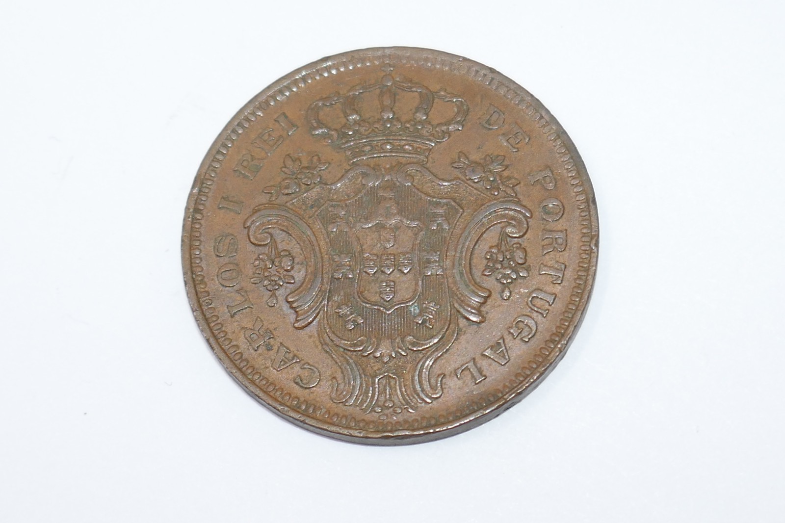The Azores Coin is a historical piece of currency from Portugal. This coin, with a composition of copper and a denomination of 10 Reis, was minted in 1901 during the reign of King Charles. It is uncertified and ungraded, making it a unique and collectible item for numismatists interested in world coins.