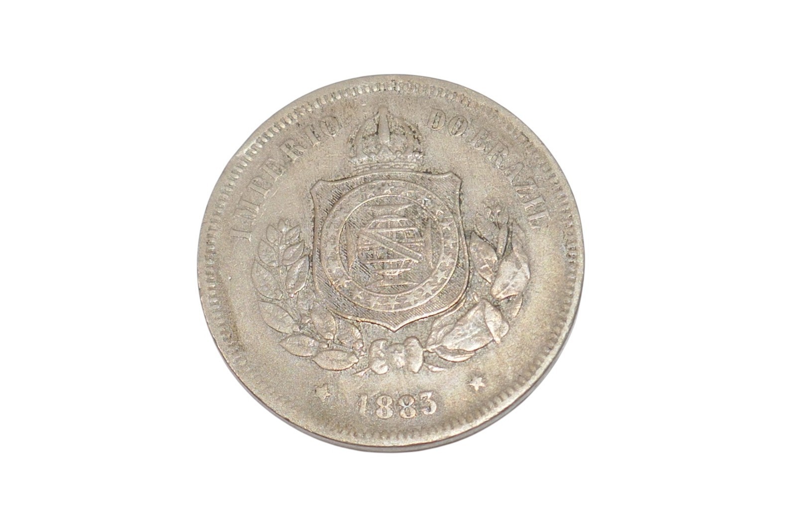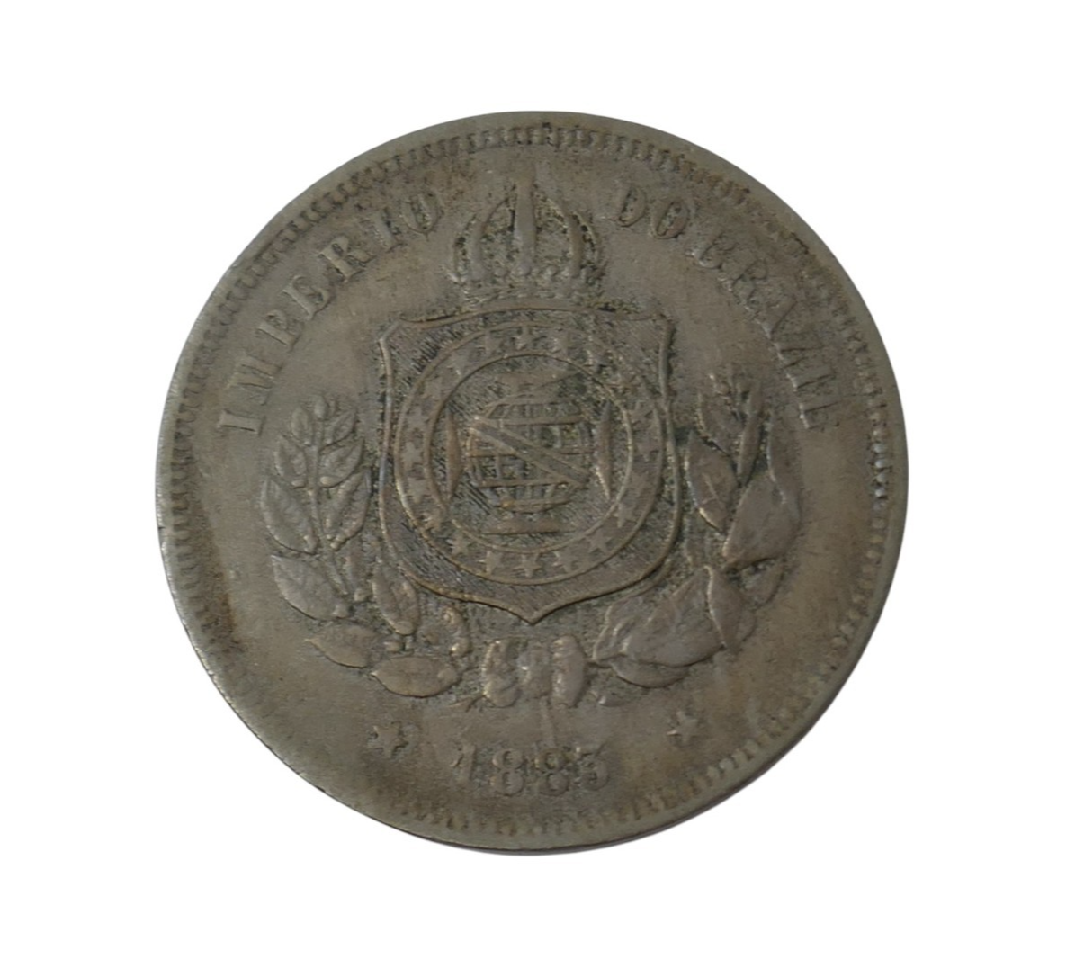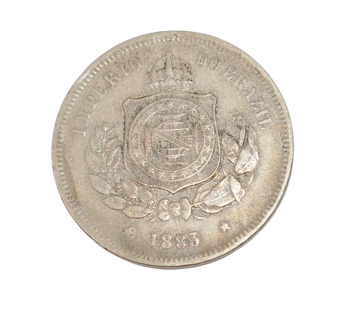 The Brazil coin is a collectible piece made of copper-nickel, featuring the Arms of the first Brazilian empire. This historical coin was minted in Brazil in 1883 and carries the denomination of 100 Reis. While the coin has not been officially certified for its authenticity and grade, it holds cultural significance as a piece of Brazilian numismatic history.
