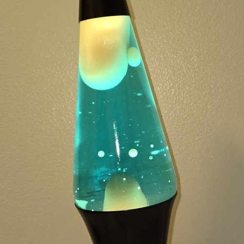 Vintage 90?s Aluminum Lava Lamp Black / Blue by Underwriters Laboratories. Approximately 16.25 inch.