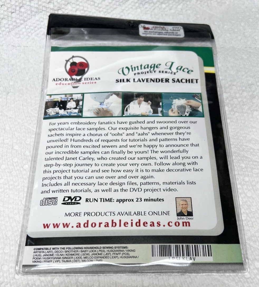 John Deer's Adorable Ideas Vintage lace Project Series Silk Lavender Sachet New in Package but opened we have others for sale and are happy to combine shipping