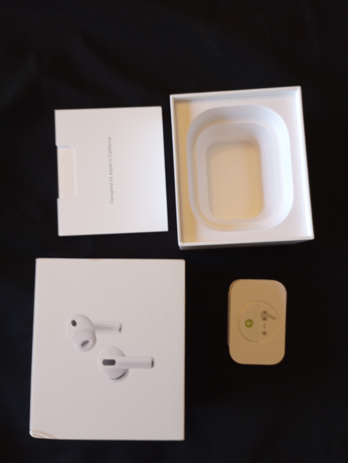 The product is an original Apple AirPods Pro 3rd Gen box with manual and 4 sets of ear tips