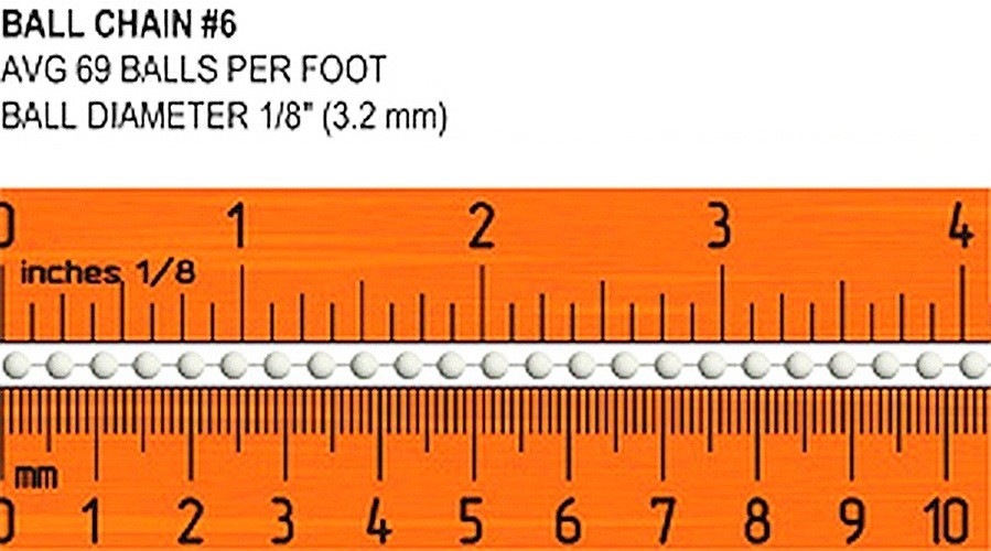 36" length X 1/8" diameter ball (.011 gauge ball) |