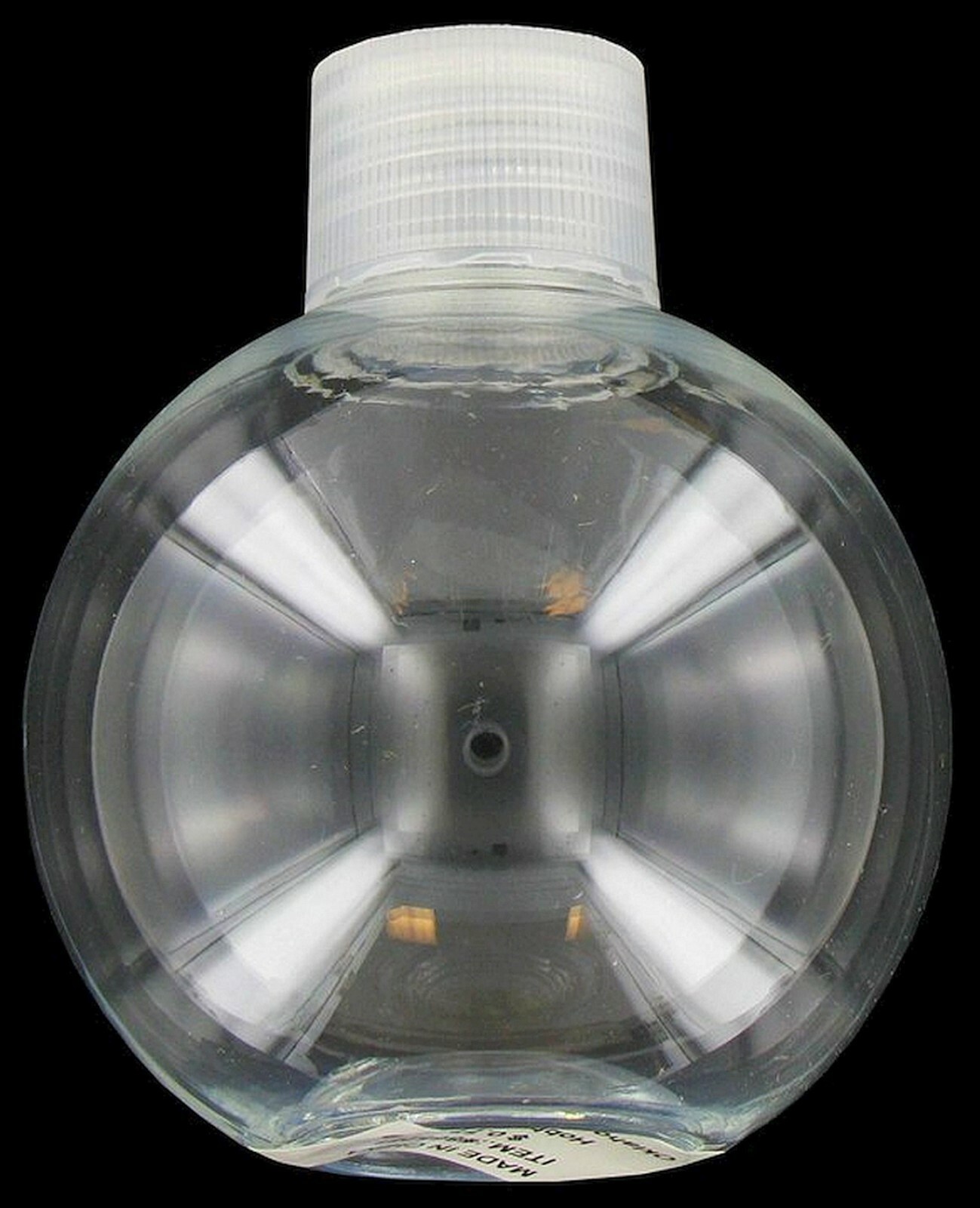 FOR SALE IS ONE (1) NEW CLEAR PLASTIC BALL SHAPED BOTTLE WITH PLASTIC SCREW-ON CAP 5 ounce SIZE + 150 mL (holds 5.07 fluid ounce or 0.634 cup) MPN 1417070865261. INCLUDES PLASTIC SCREW ON CAP WHICH PROVIDES AIRTIGHT SEAL PERFECT FOR ANY LIQUID, TOILETRY, SHAMPOO, LOTION, CRAFT PROJECT, ETC. NOT SUITABLE FOR FOOD OR WATER STORAGE. FLAT BOTTOM, DIMENSIONS INCLUDING THE SCREW ON CAP ARE 3 1/4" tall x 2 3/4" diameter, THE OPENING DIAMETER IS ABOUT THE SIZE OF A PENNY. THIS IS A lightweight and thin PLASTIC BOTTLE, CONSTRUCTED OF A THINNER AND SOFTER PLASTIC THAT WILL BEND OR PUNCTURE IF PUT TO THE TEST (not rock hard). THIS ITEM IS BEING USED FOR EVERYTHING FROM COLORED SAND, TO STORAGE FOR TRAVEL OR CAR, TO TABLE DECORATION AT AN EVENT, ONE USER REPORTS, THEY FILL THIS WITH MONEY FOR GIVE A WAYS. YOU WILL RECEIVE ONE (1) BALL SHAPED 5 oz = 150 mL BALL SHAPE CLEAR PLASTIC BOTTLE WITH SCREW ON CAP SHIPPED BY USPS.....