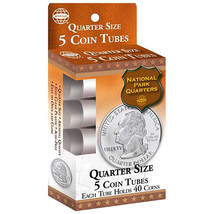 5 QUARTER Size COIN TUBES clear plastic 40 and 50 similar items