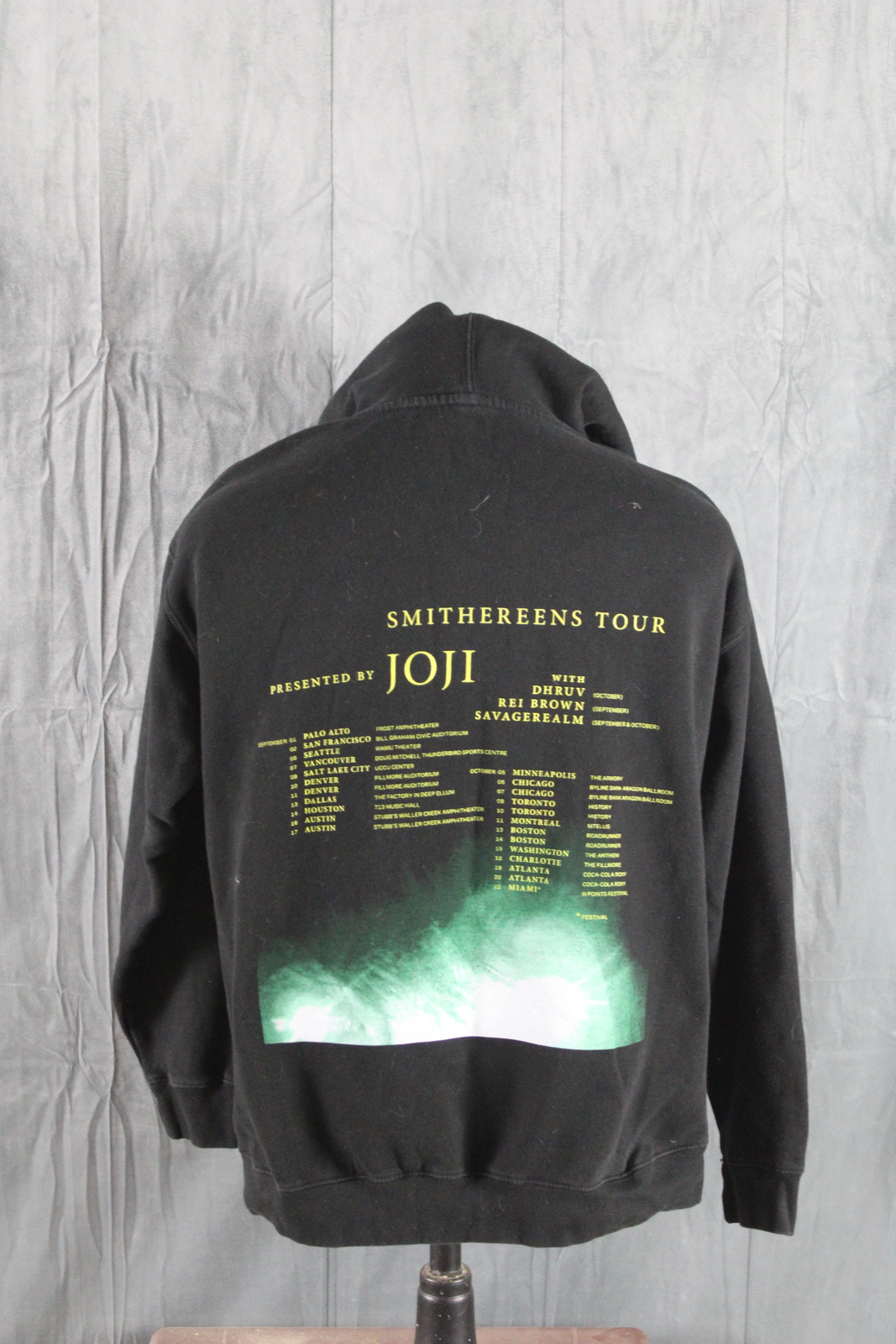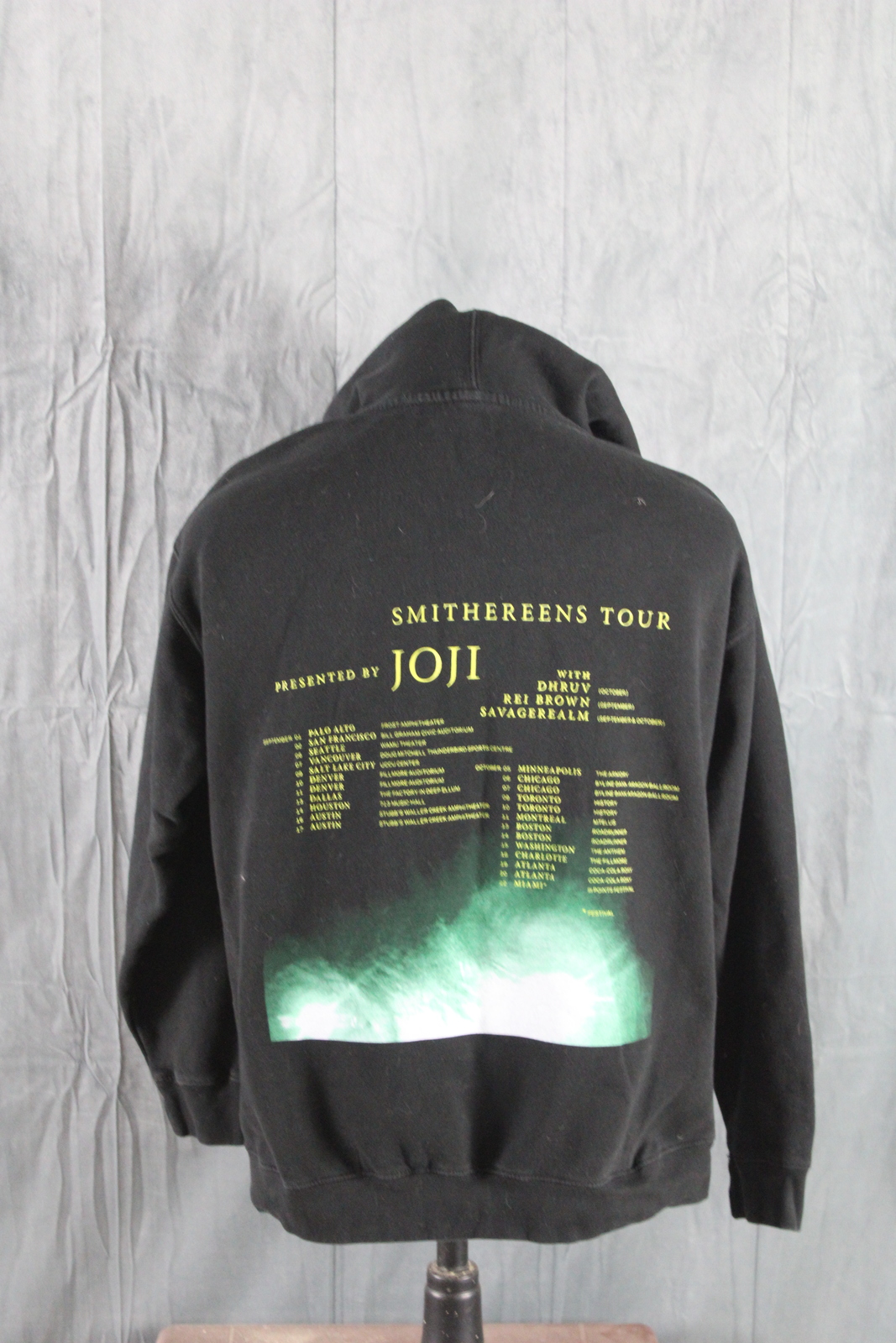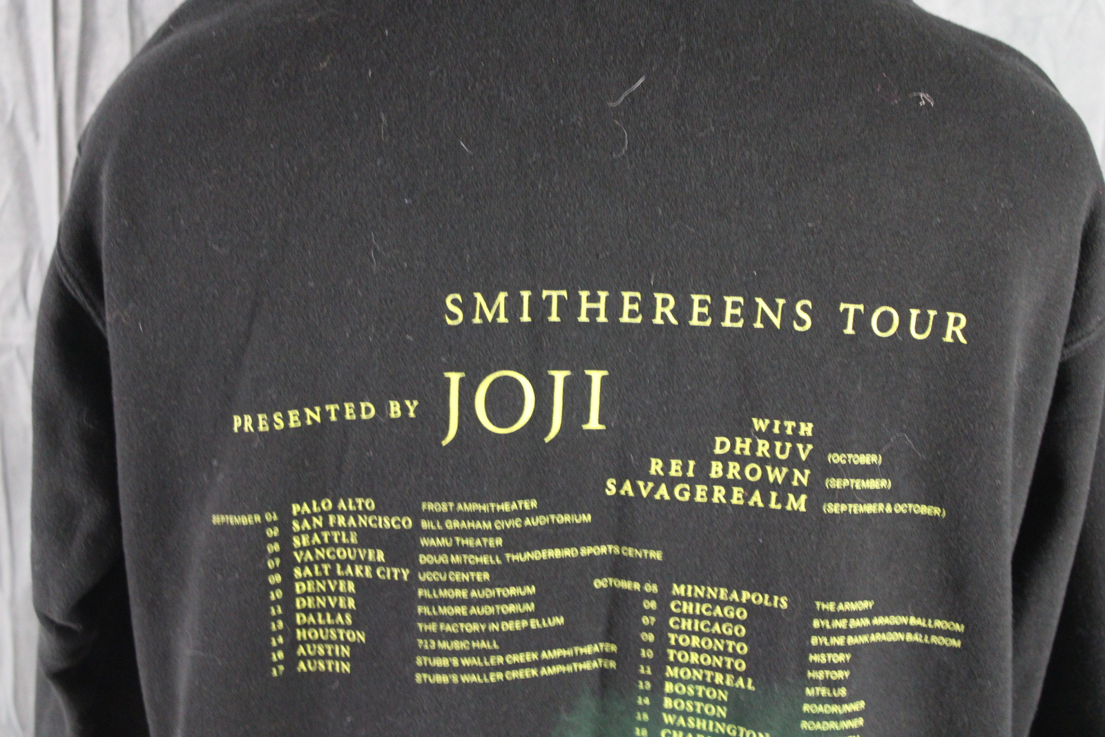 Up for sale is a band tour hoodie. It has a black base colour with Smithereens screened on the chest. The back of the hoodie has a large graphic for Joji's 2022 Smithereens tour with the tour dates underneath. What a great hoodie do not miss out on it.