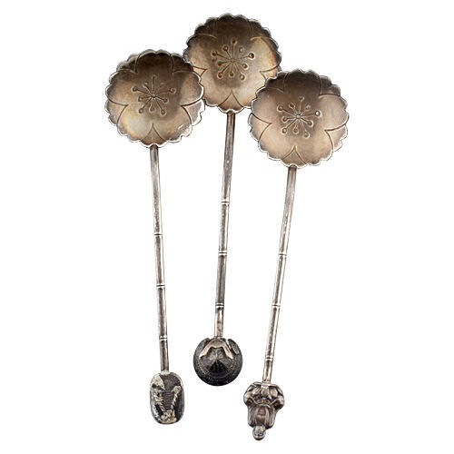 Vintage Japonais Argent Sterling 950 Demitasse Bambou Cuillères Ensemble De 3