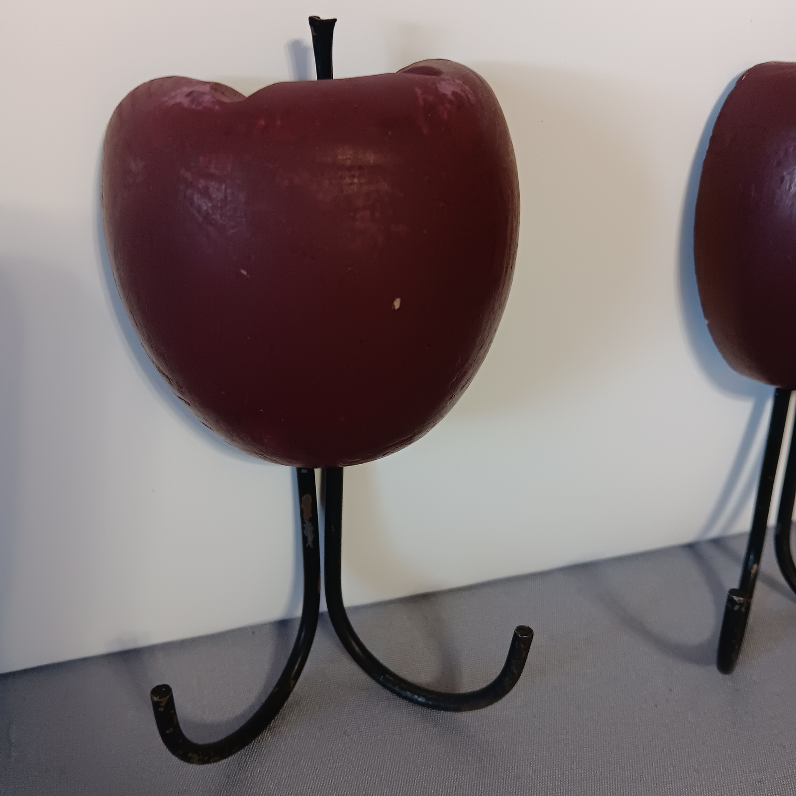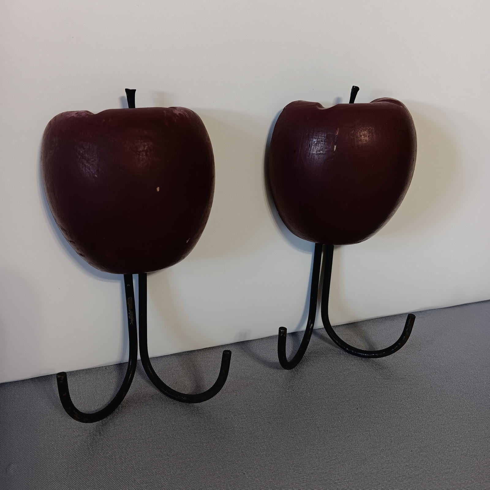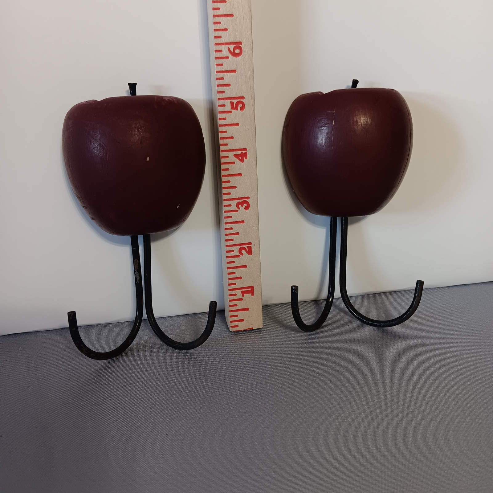 Set of 2 wooden Apple wall hooks/Hanger, key holder with a country farmhouse vibe. Good condition with normal wear.
