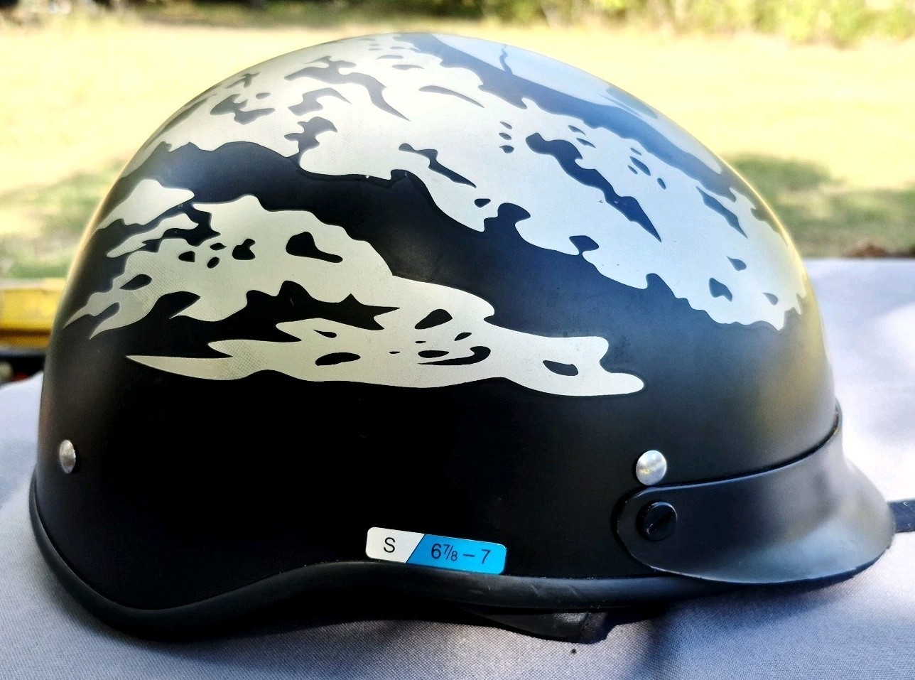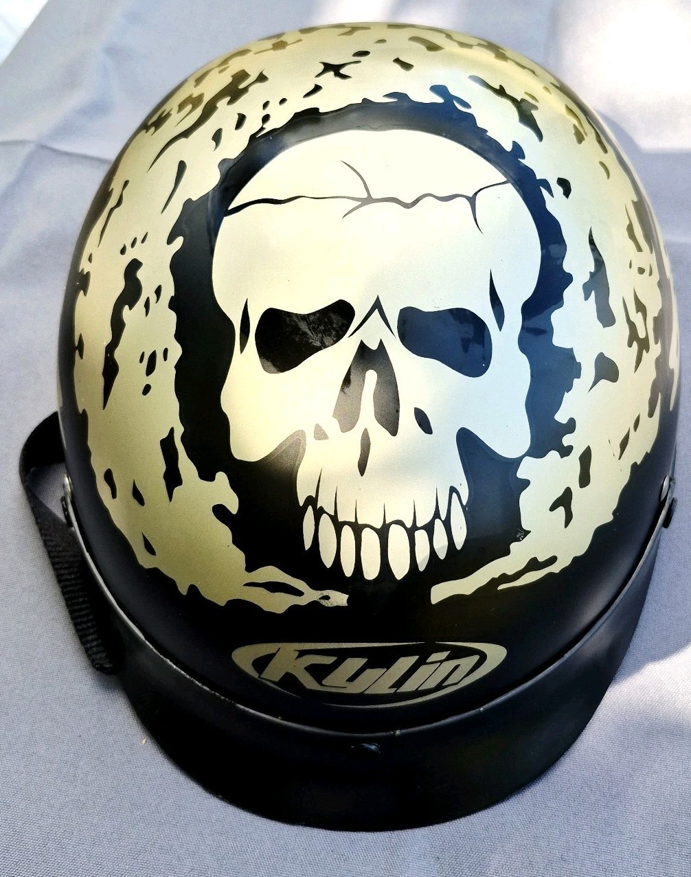 Kylin Motorcycle Half Helmet Silver Skull Design Size Small