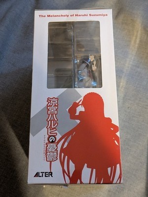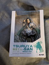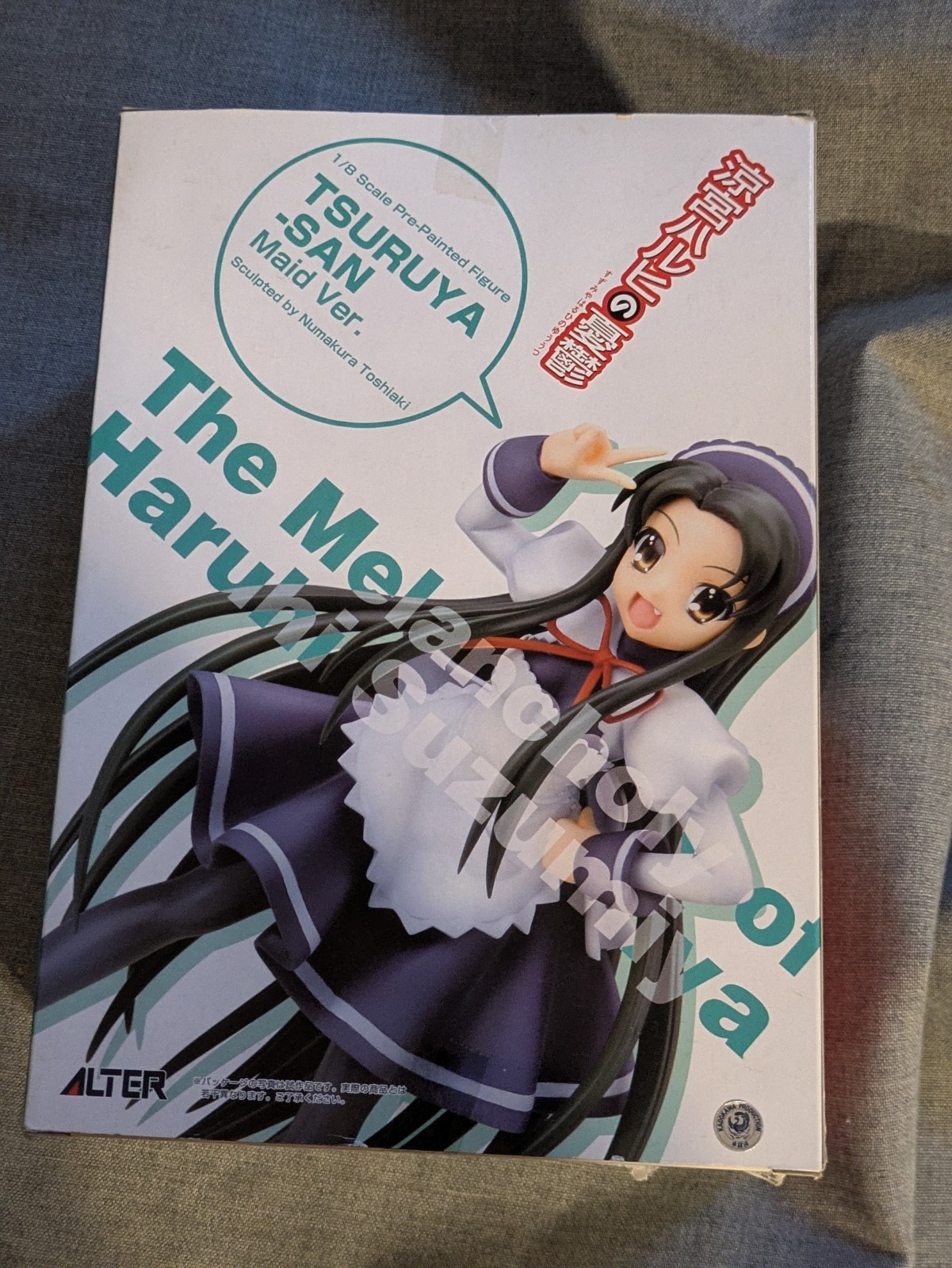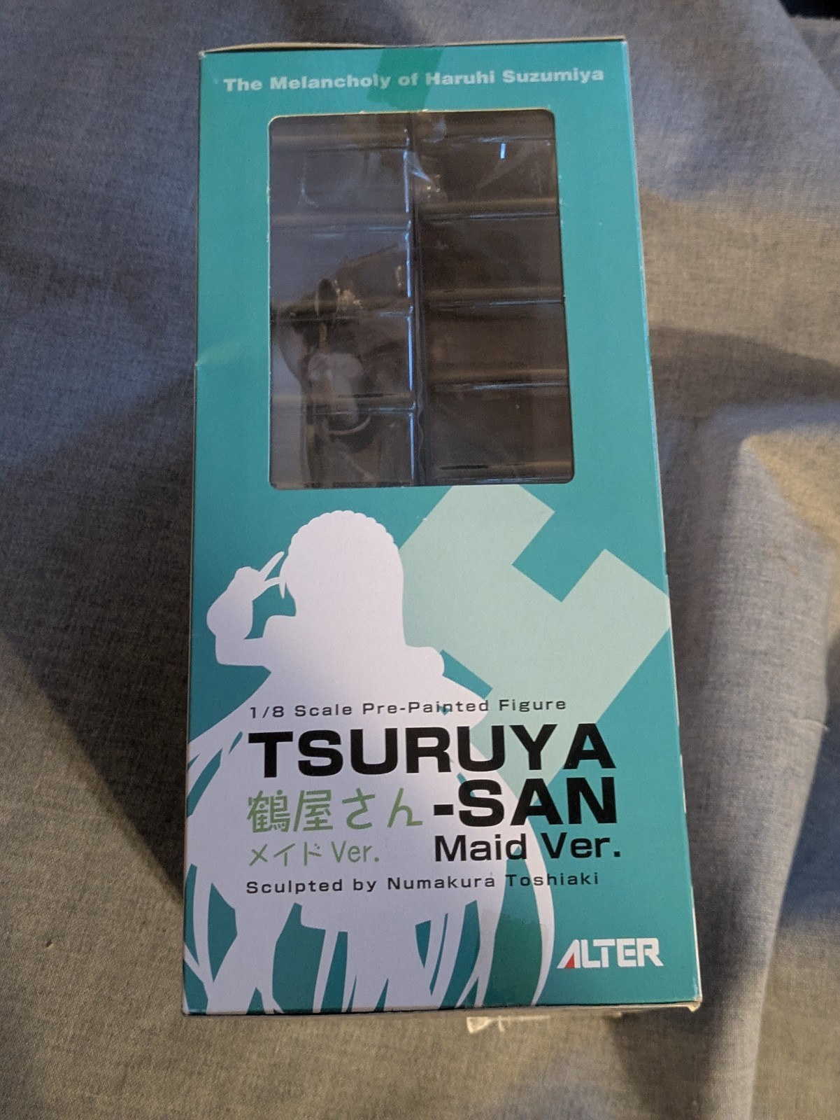 The product is a 1/8 scale painted figure of Tsuruya-san from the Melancholy of Haruhi Suzumiya franchise. Produced by ALTER in Japan, this PVC figurine depicts the character in a maid outfit, staying true to the original designs. This collectible item is a must-have for fans of the series, adding a touch of nostalgia and charm to any anime collection. New in box. Box has some crushing damage.