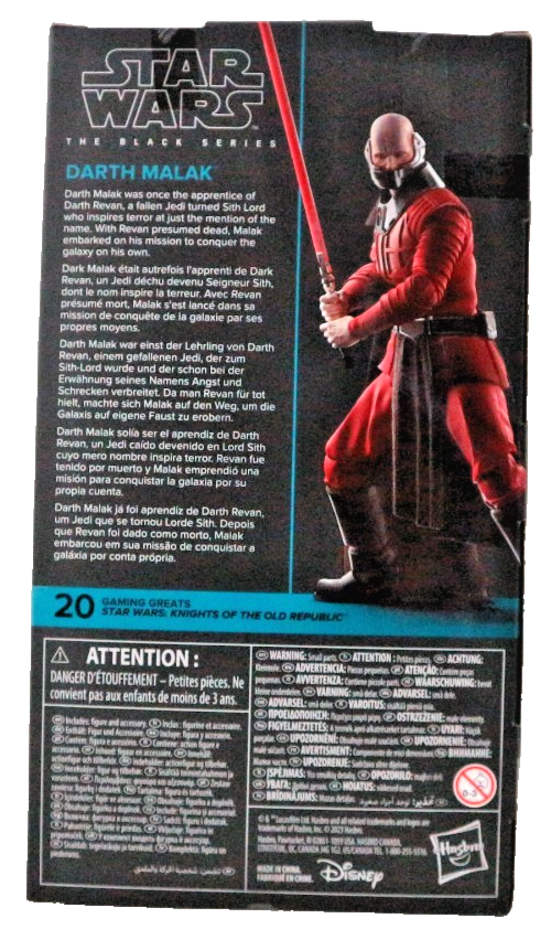 The Hasbro Star Wars The Black Series Darth Malak 6-inch action figure is a highly detailed and collectible toy inspired by the character from the Star Wars franchise. This officially licensed replica features intricate design elements, making it a must-have for any fan of the series. Perfect for display or imaginative play, this black-themed figure is a great addition to any action figure collection.