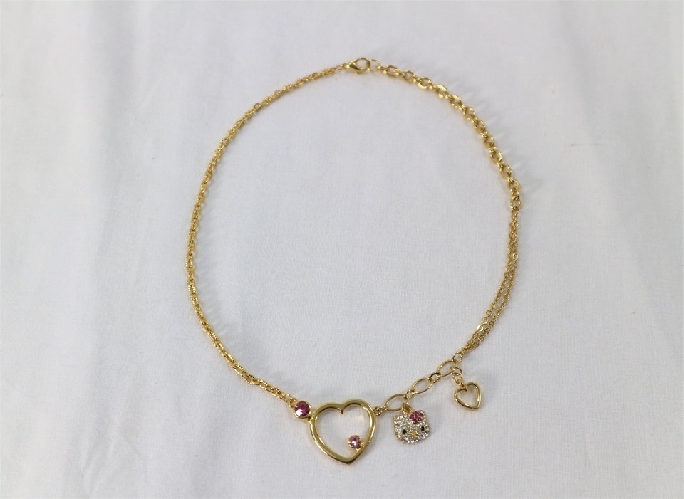 - Hello Kitty Gold Open Heart Necklace with Gemstones.