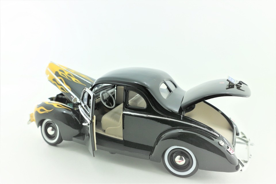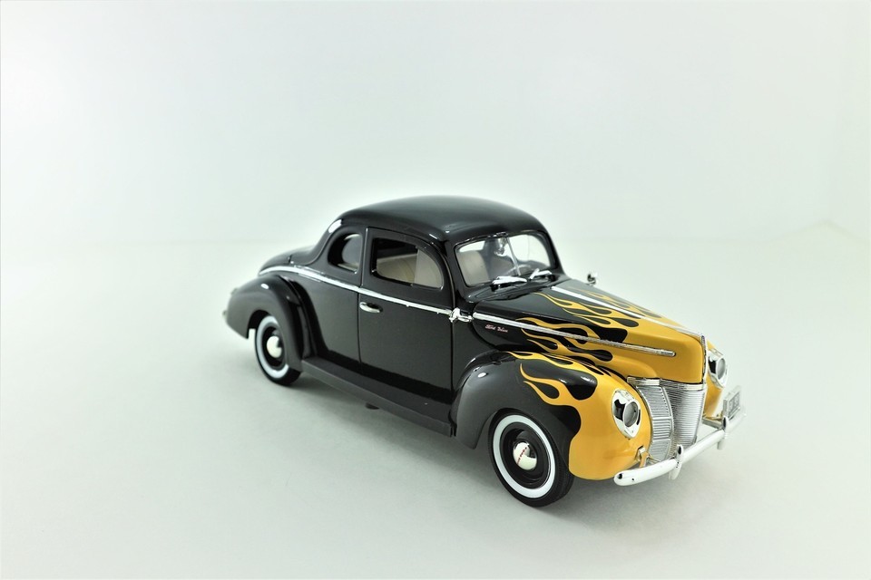 1940 Ford Deluxe Die-cast 1:18 Scale Model Car Black / Gold Flame