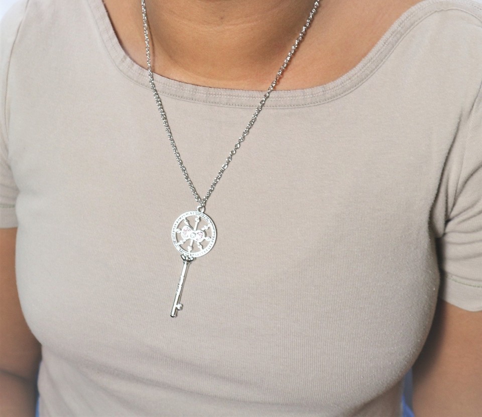 Hello Kitty Stainless Steel Necklace with Key Ribbon Pendant | Momoberry Sanrio.
