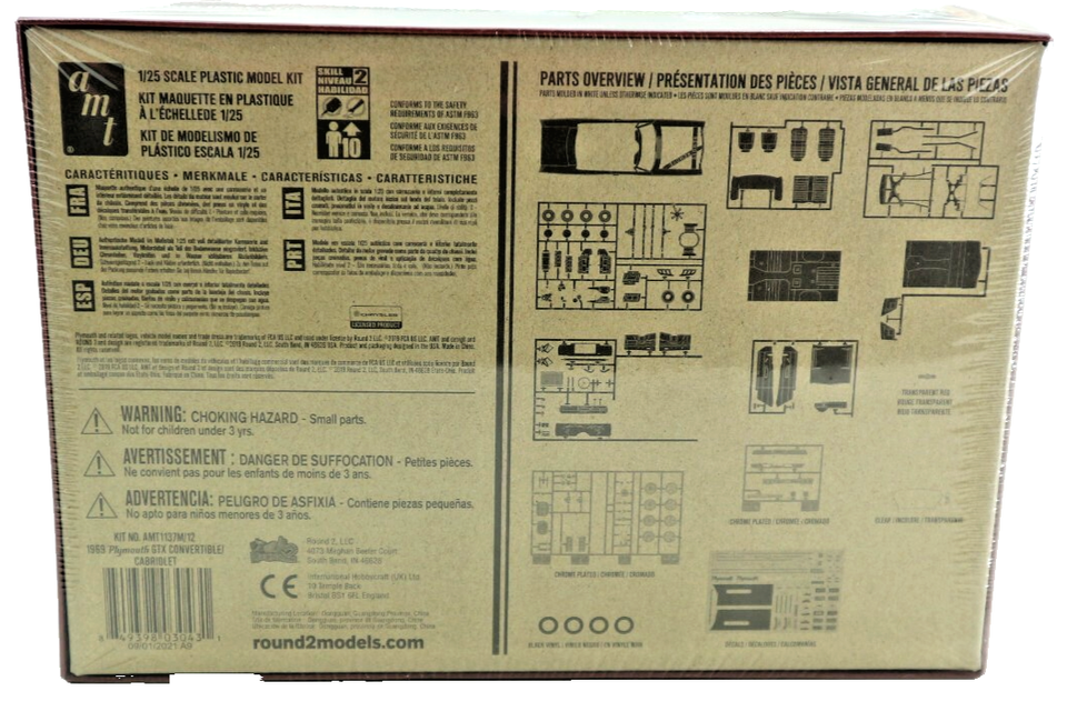 - AMT 1969 plymouth GTX Convertible Cabriolet 1:25 scale Plastic Model Kit
