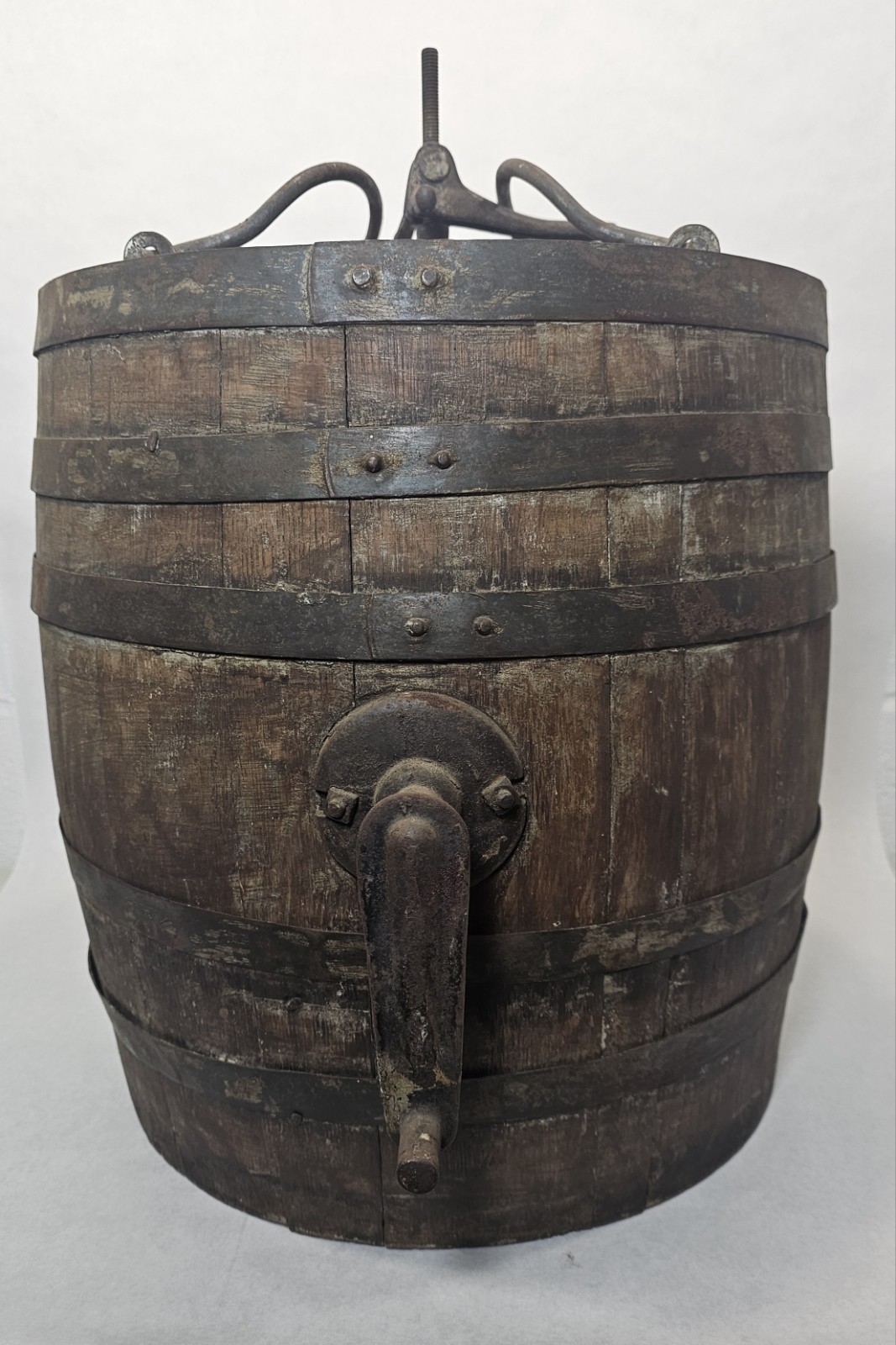 Antique Wooden Barrel Banded Churn Primitive Cabin Decor