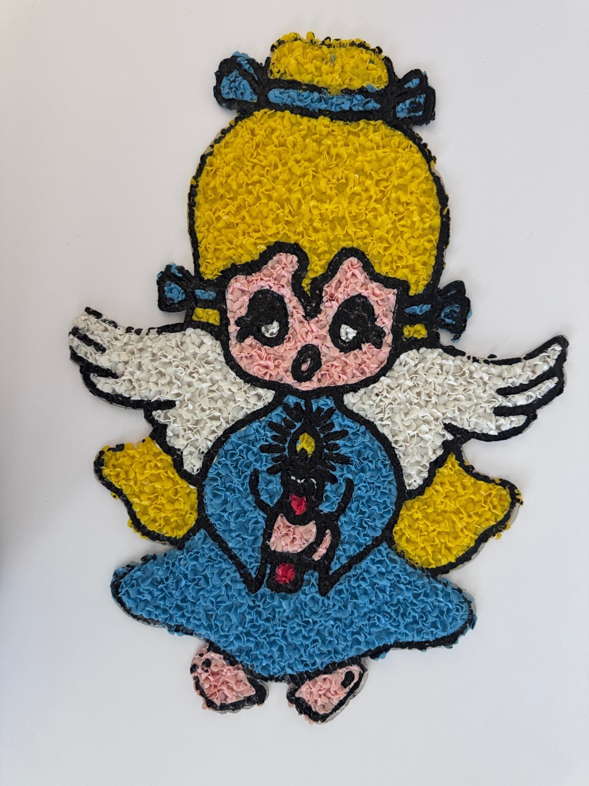 Vintage Melted Plastic Popcorn Christmas Angel Decoration