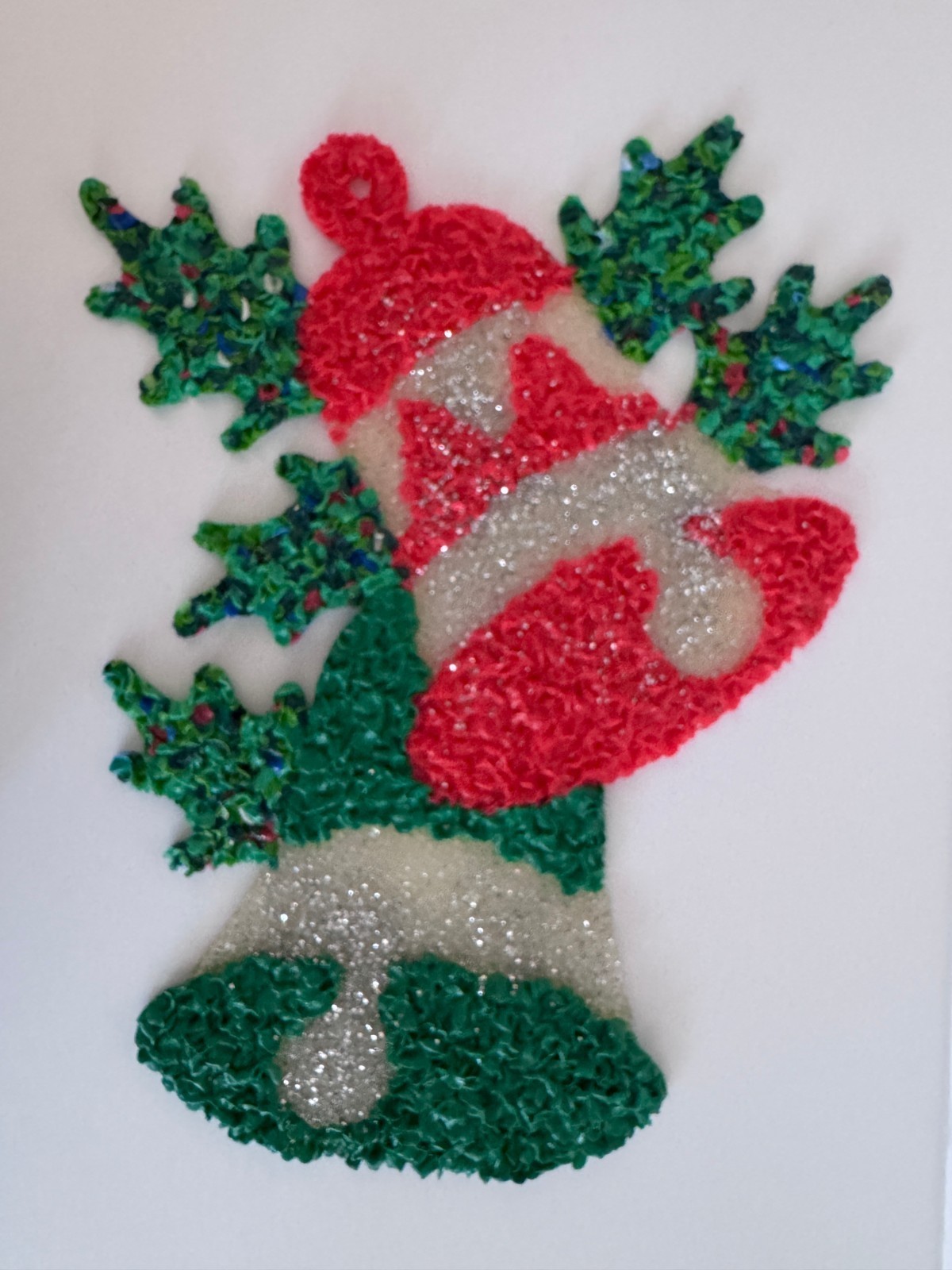 Vintage Melted Plastic Popcorn Christmas Red Green Bells Decoration