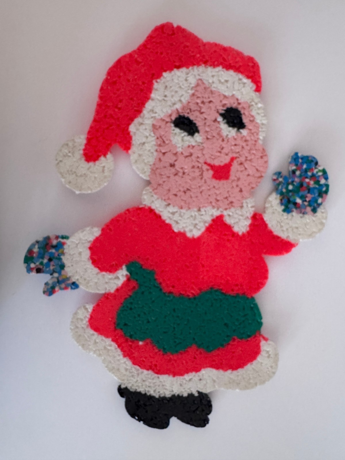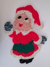 Vintage Melted Plastic Popcorn Christmas Mrs. Santa Claus Decoration