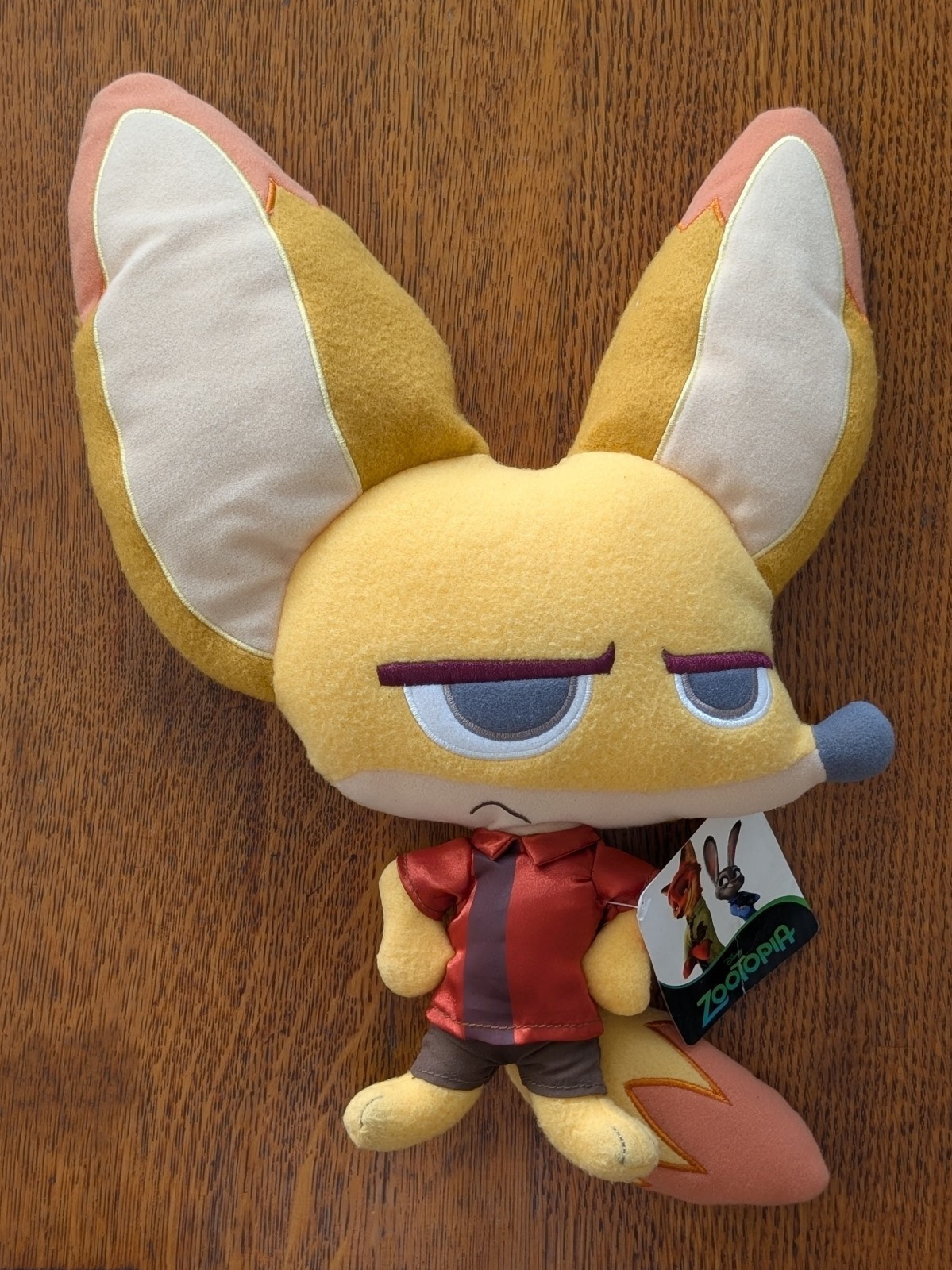 Finnick is a Fennec Fox 14" Stuffed Toy Collectible and a supporting character in Disney's 2016 animated feature film Zootopia. He is a hot-tempered fennec fox, and Nick Wilde's former partner-in-crime. Finnick has a sonorous voice, but is often mistaken for a child due to his cute appearance and diminutive stature.
