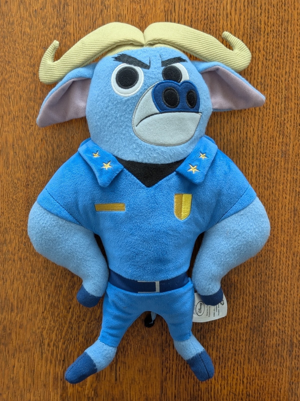 Police Chief Bogo is a Cape Buffalo 14" Stuffed Toy Collectible featuring the lovable character from the popular animated movie Zootopia made by Disney. This plush toy is perfect for fans of the film or collectors of Disneyana with its high-quality construction and attention to detail.