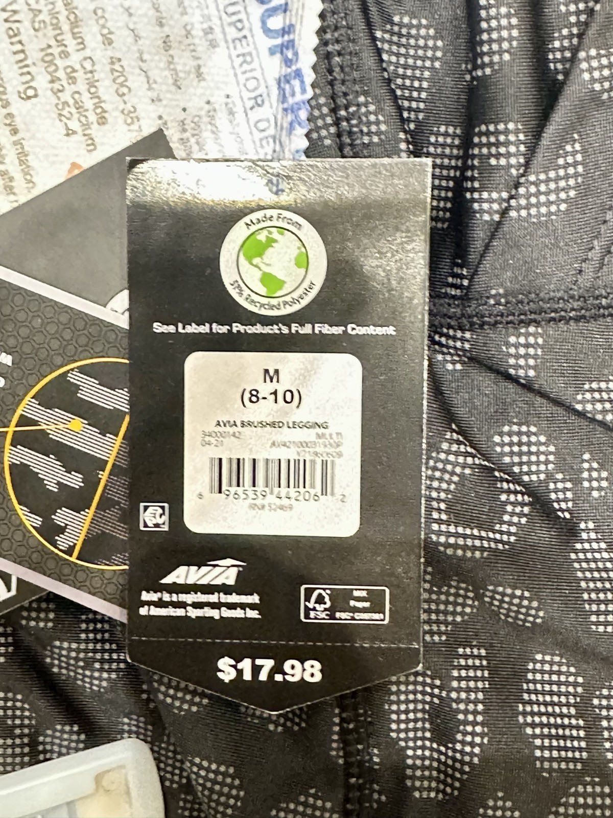 This listing is for a new in box (NIB) wholesale lot of 10 Avia Ladies Active Brushed Leggings. These high-quality leggings feature reflective safety accents, a flattering fit, and soft brushed fabric designed for comfort during workouts or casual wear.
