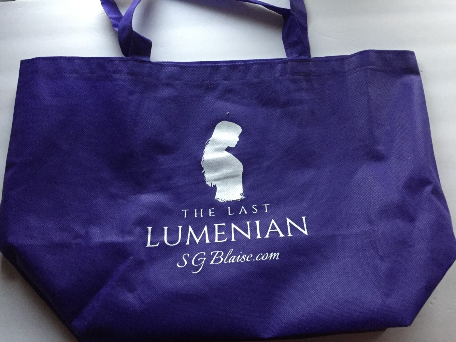 Preowned The Last Lumenian SG Blaise Reusable 19x9x7 Tote Bag. Clean, and good. Like New. Barely used from Comic Convention. Nice reusable bag.
