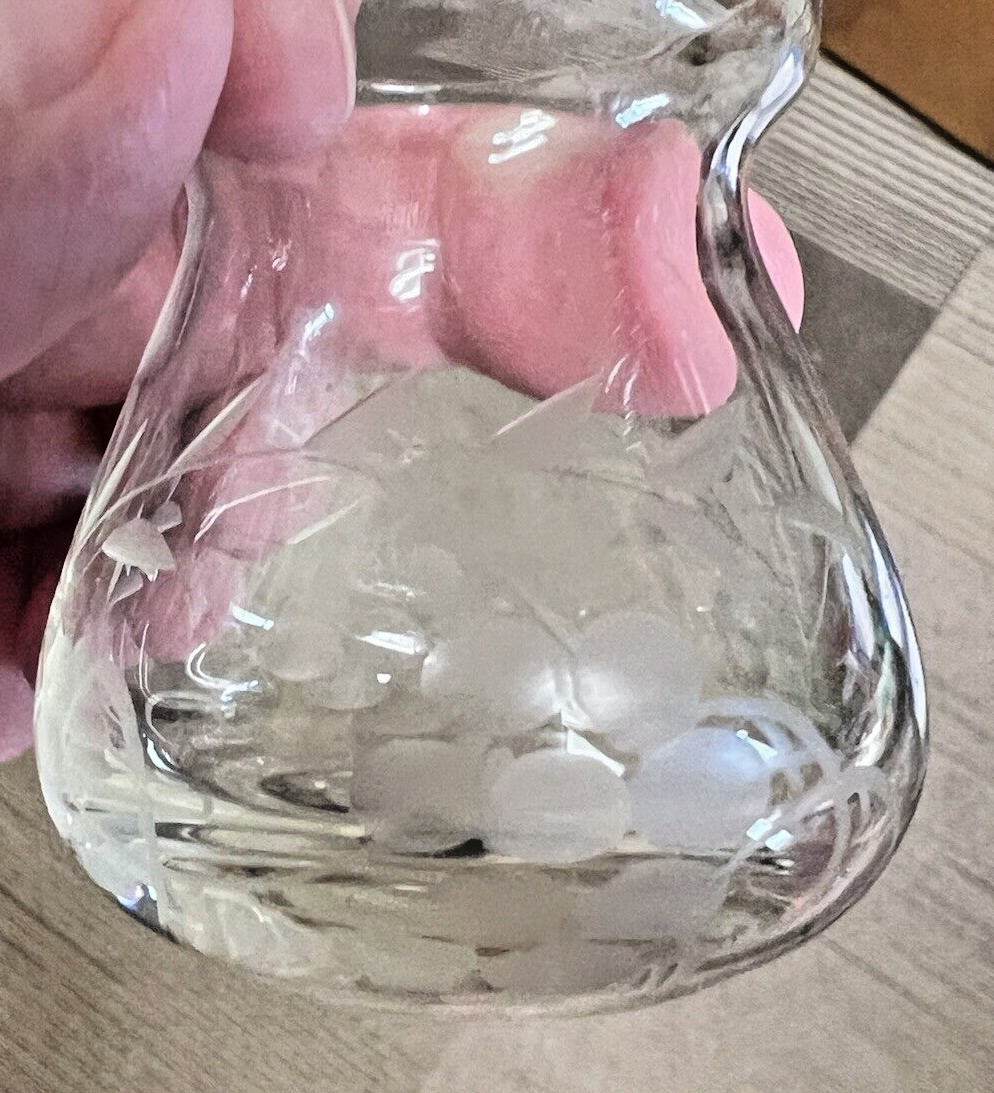 Antique Webster Sterling Crystal Mustard Jar w Lid Spoon Etched Floral Jar