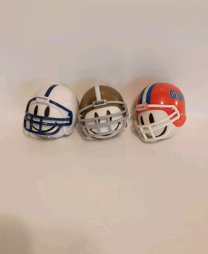 This 3-piece antenna topper set features football helmets representing the Penn State Nittany Lions, Purdue, and the Gators. The antenna toppers are designed in a multi-color scheme and are suitable for both men and women. Made in China, these toppers are one size fits all and are great for showing team spirit during the regular football season. Perfect for fans of college football, especially those supporting these specific teams. This is a pre-owned item with normal wear.