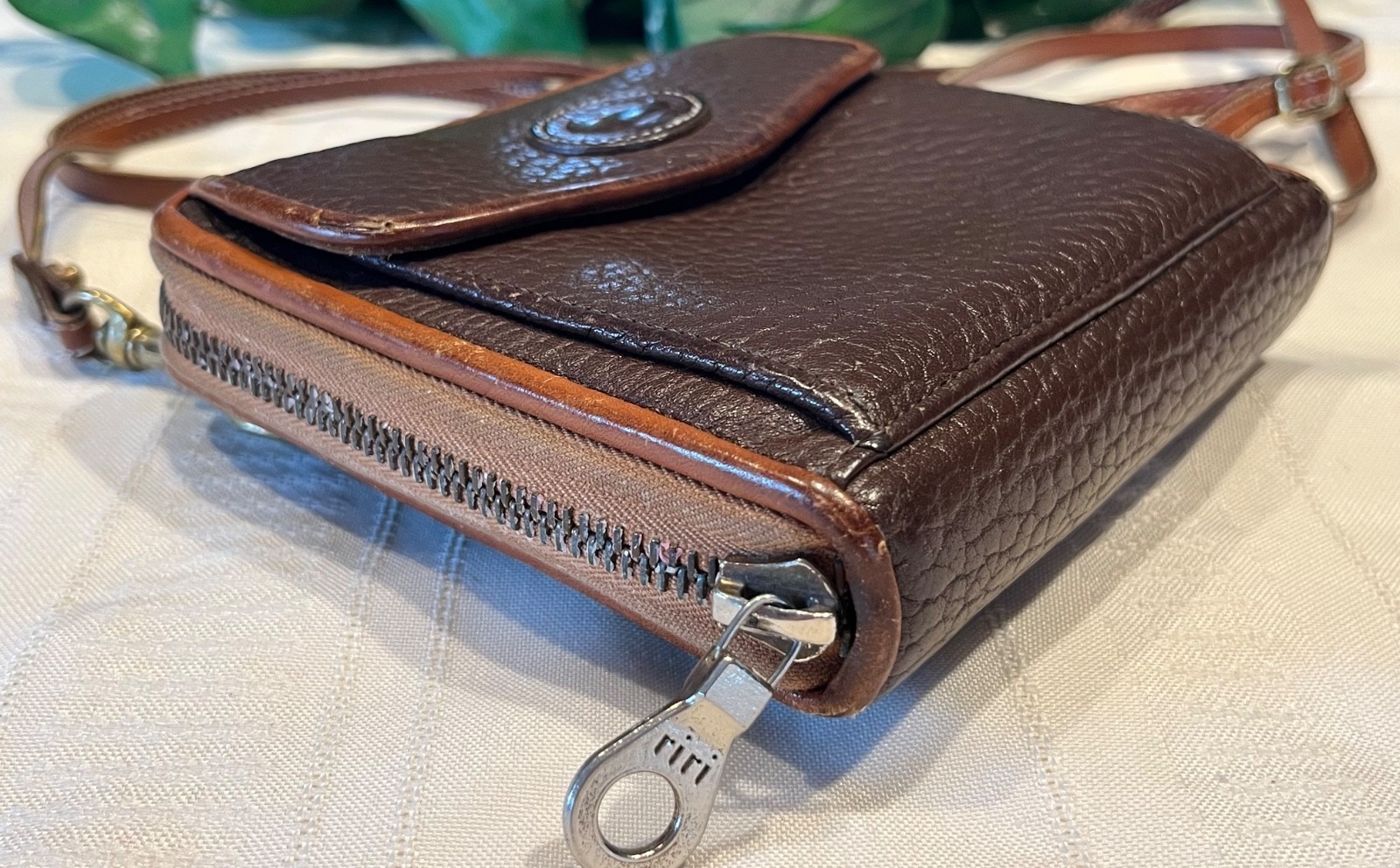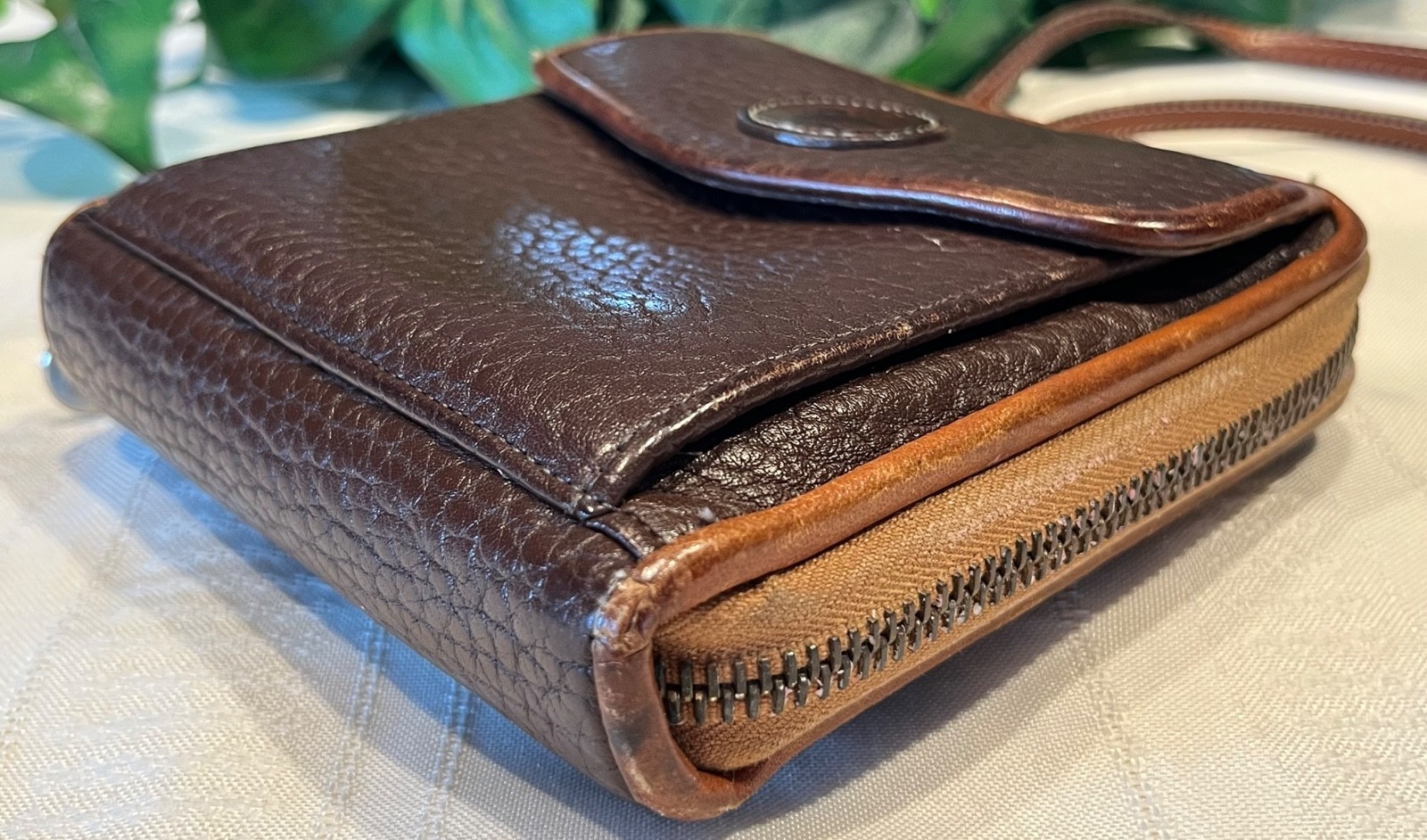 Dooney Bourke Vintage W50 AWL Leather Zip Along Wallet Crossbody Belt Bag Taupe