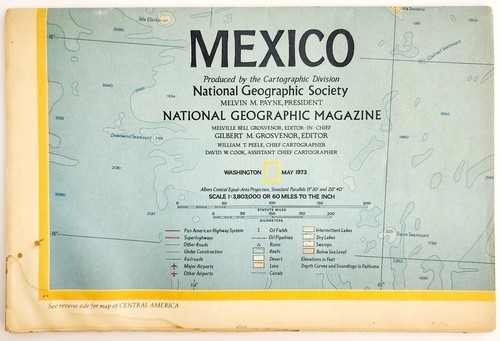 1973 Mexico Central America Map Double Sided National Geographic 22 x 34" E89E