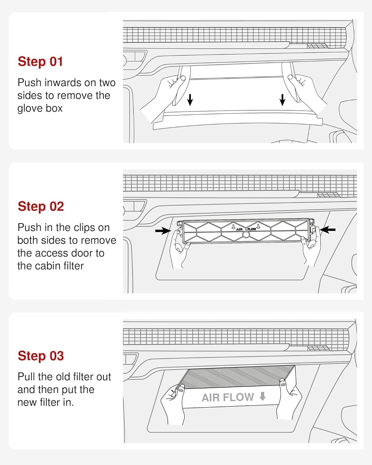 : To maintain optimal HVAC performance, the cabin air filter should be replaced annually or every 12,000 miles. However, for driving in heavily polluted areas or on dirt roads, more frequent replacements every 5,000 miles are advised. This not only enhances the efficiency of your vehicle's HVAC system but also guarantees a continuous supply of clean and fresh airflow, contributing to a more enjoyable driving experience.