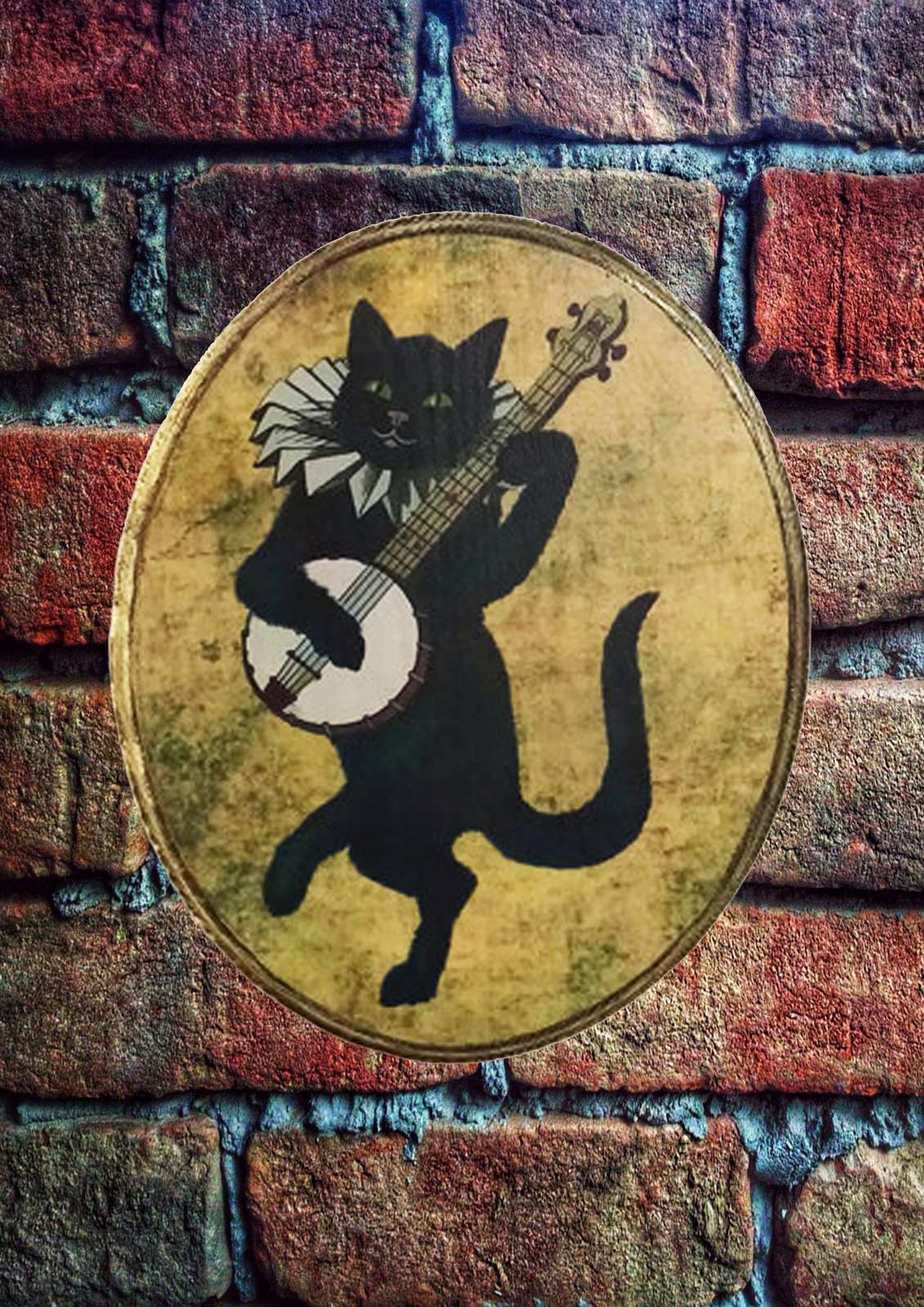 Black Cat Banjo Wooden Plaque: Handmade Folk and 48 similar items