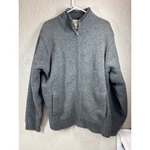 L.L. Bean Men?s 100% Wool Full Zip Fleece Lined Sweater Jacket Grey Size Large