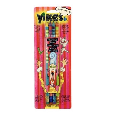 Vintage 90s YIKES! Screwballs Pencils HB #2 Black Lead NOS 4 pk Bold Color Clash