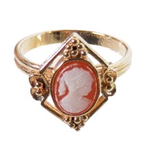 Vtg 1978 Sarah Coventry Gold Tone Adjustable Faux Shell Cameo Portrait Ring 70s