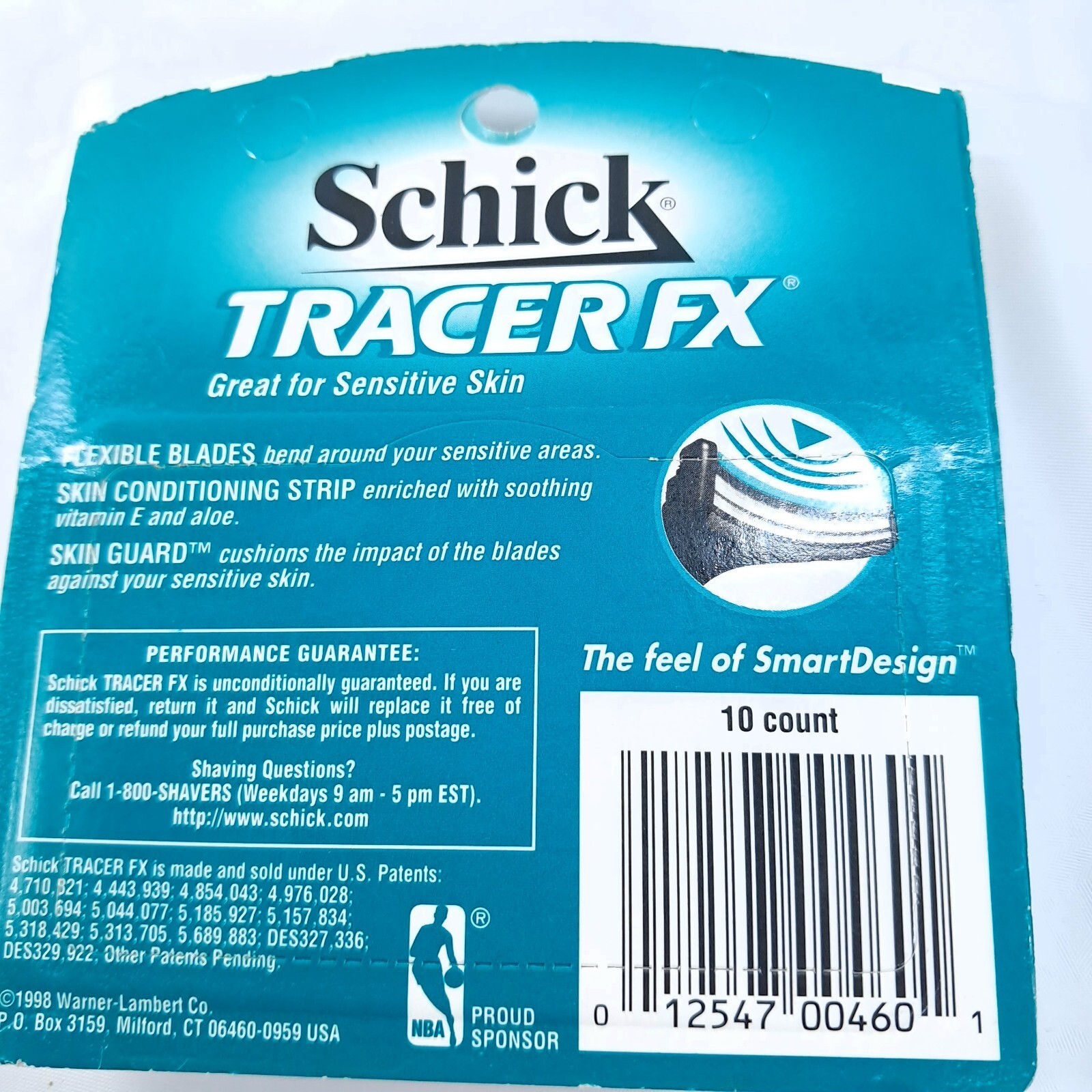 Schick Tracer FX sensitive skin 10 refill blades pack for men razor 1998 Vintage