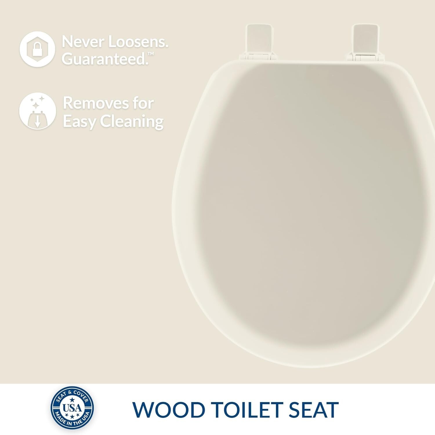 Round Toilet Seat, Enameled Wood, Gloss, Biscuit - Mayfair 41EC-346 Cameron
