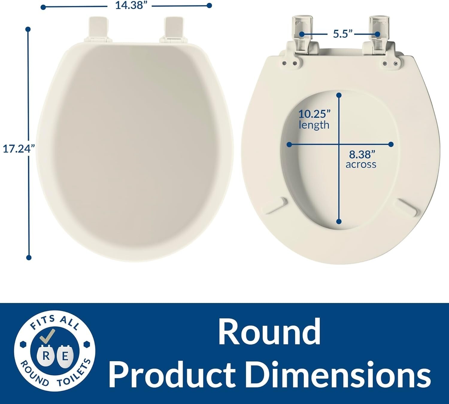 The Mayfair by Bemis Cameron Round Biscuit Enameled Wood Toilet Seat perfectly blends style and function. The biscuit color is a classic addition to any bathroom decor and the enameled wood is resistant to scratches and chips. Plus, the easy-to-clean design adds convenience to your daily routine. This toilet seat is designed with a high-gloss finish that is both durable and beautiful.
