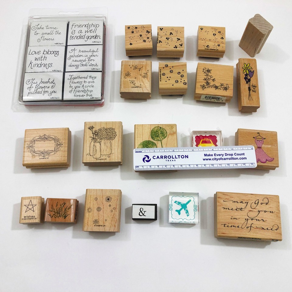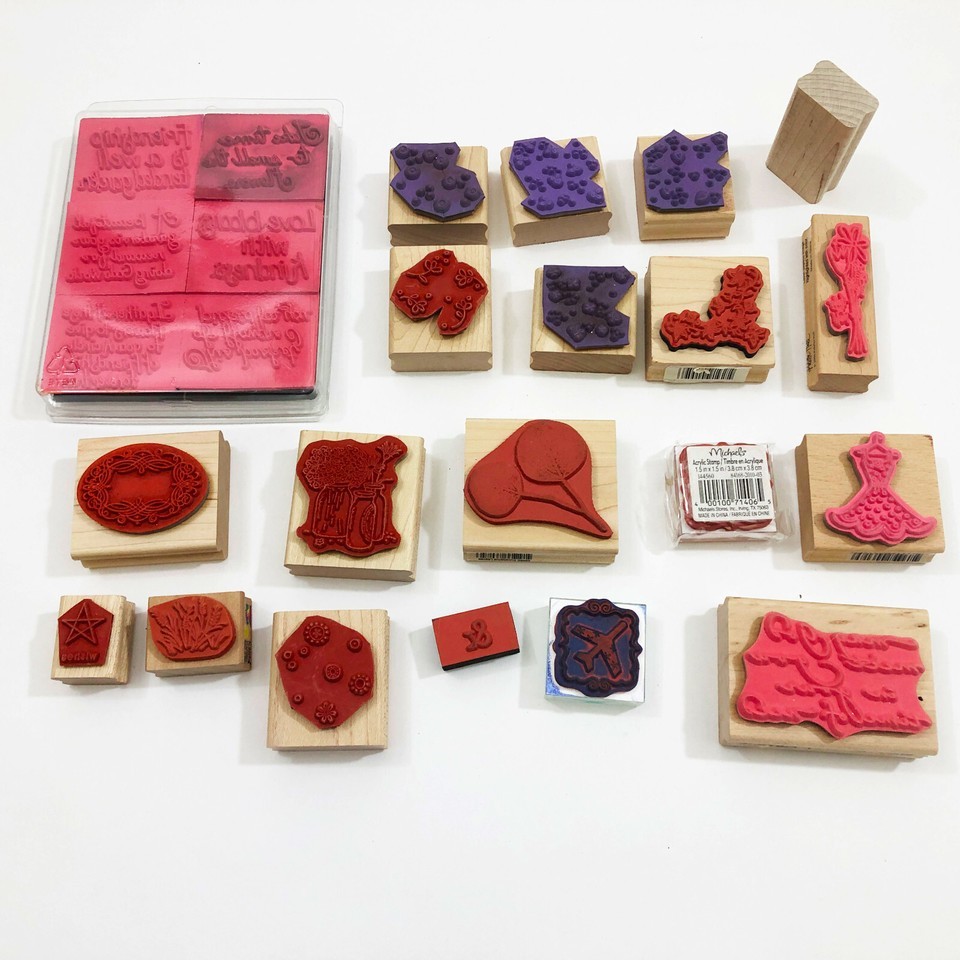 Set of 25 Crafting Stamps Miscellaneous Floral Sayings Geometric Plus More Used