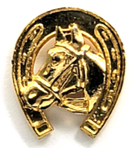 Horse Head Horseshoe Pin Gold Tone Equestrian Lucky Charm Western Riding Country